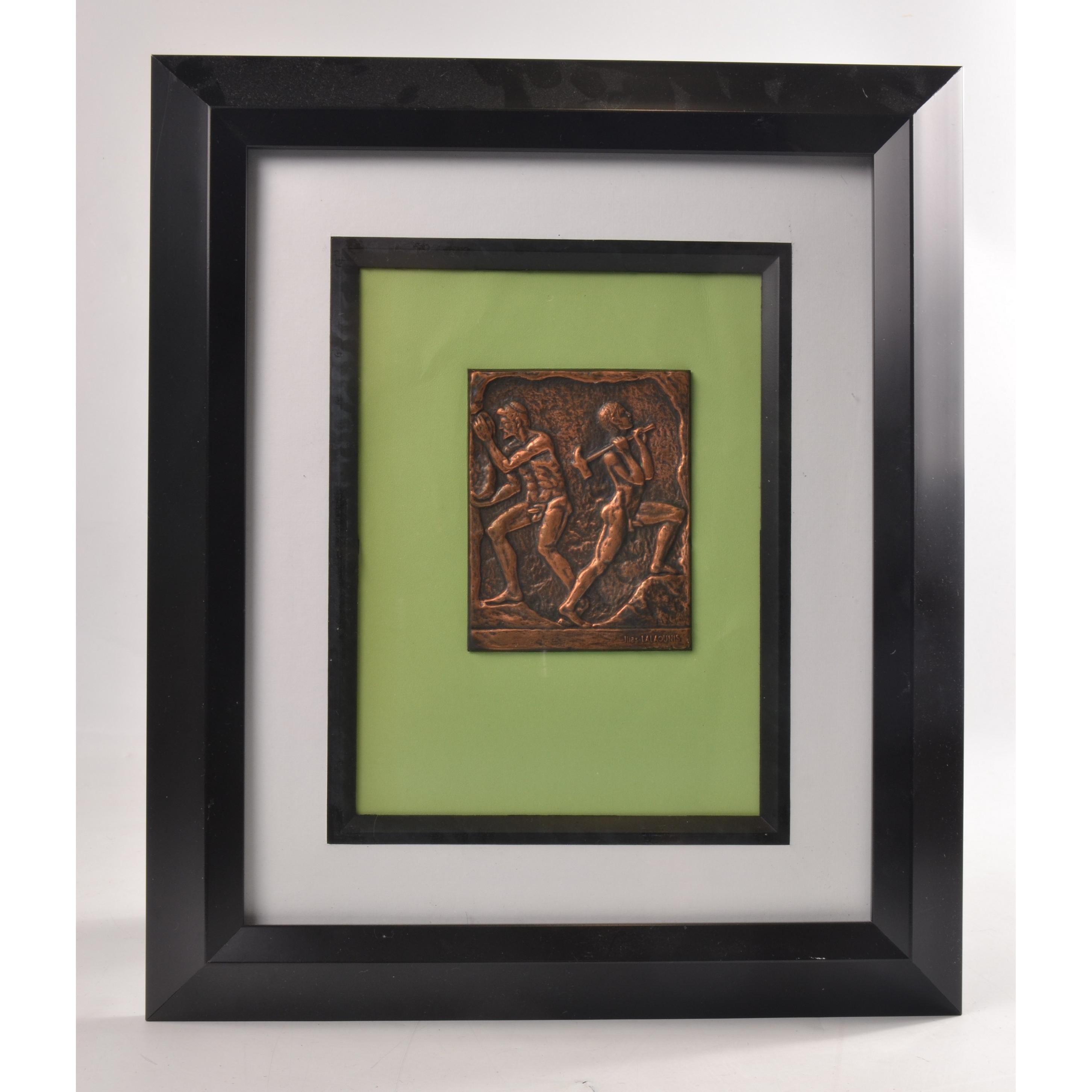 LILIAS LALOUNIS 'Materials' beaten copper on bronze plate attributed & Stamped, Greek Jeweller, artist and academician, 100mm x 75mm x 5mm
