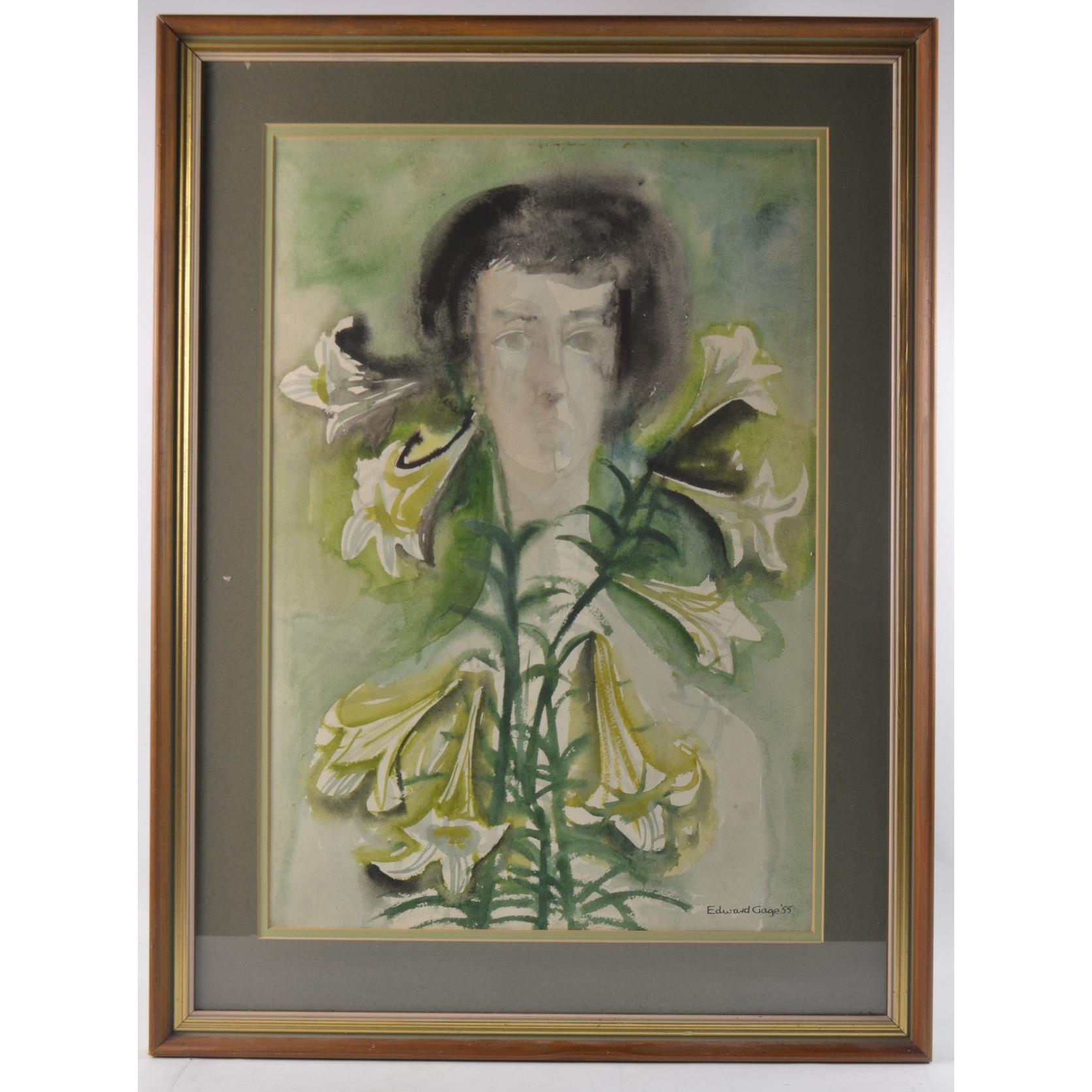 'Nancy with Madonna Lilies' watercolour 55cm x 38cm signed bottom right.
