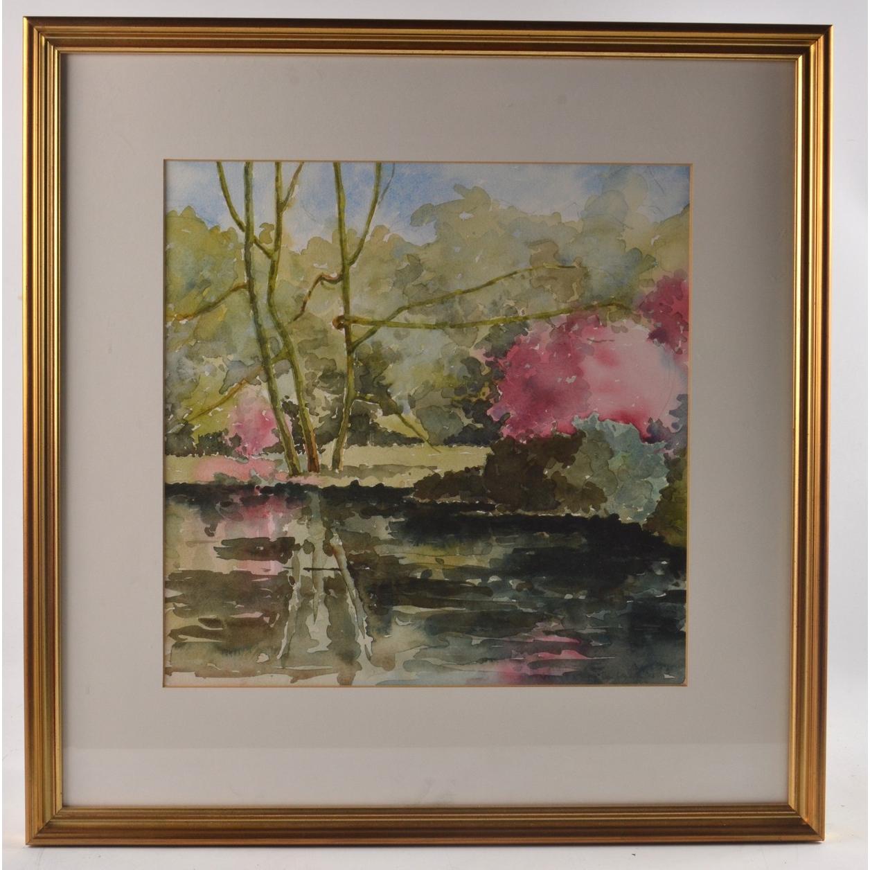 JOHN COLQUHOUN Scottish watercolour 'tree and river scene' 36cm x 36cm. Condition Report: Prior to bidding, please consult the additional photos provided and ask all pertinent questions