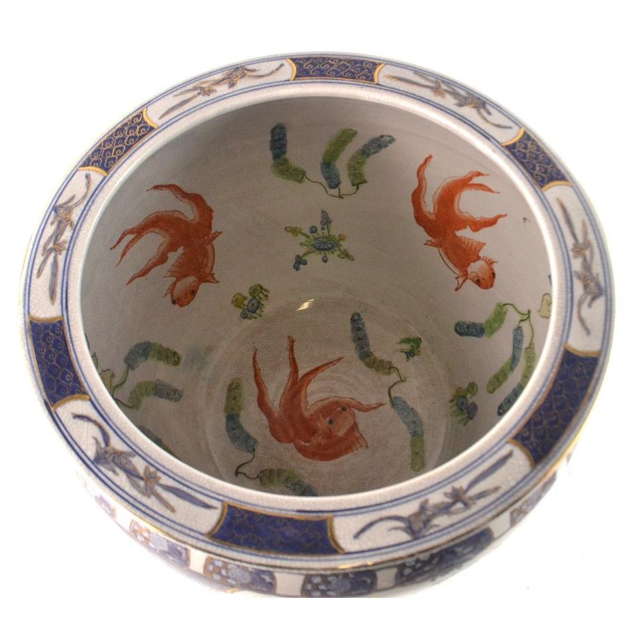 STUNNING! Oriental design fish bowl with hardwood stand and blue and gilt highlights in floral designW: 37cm approx H: 49 (incl stand) approx
