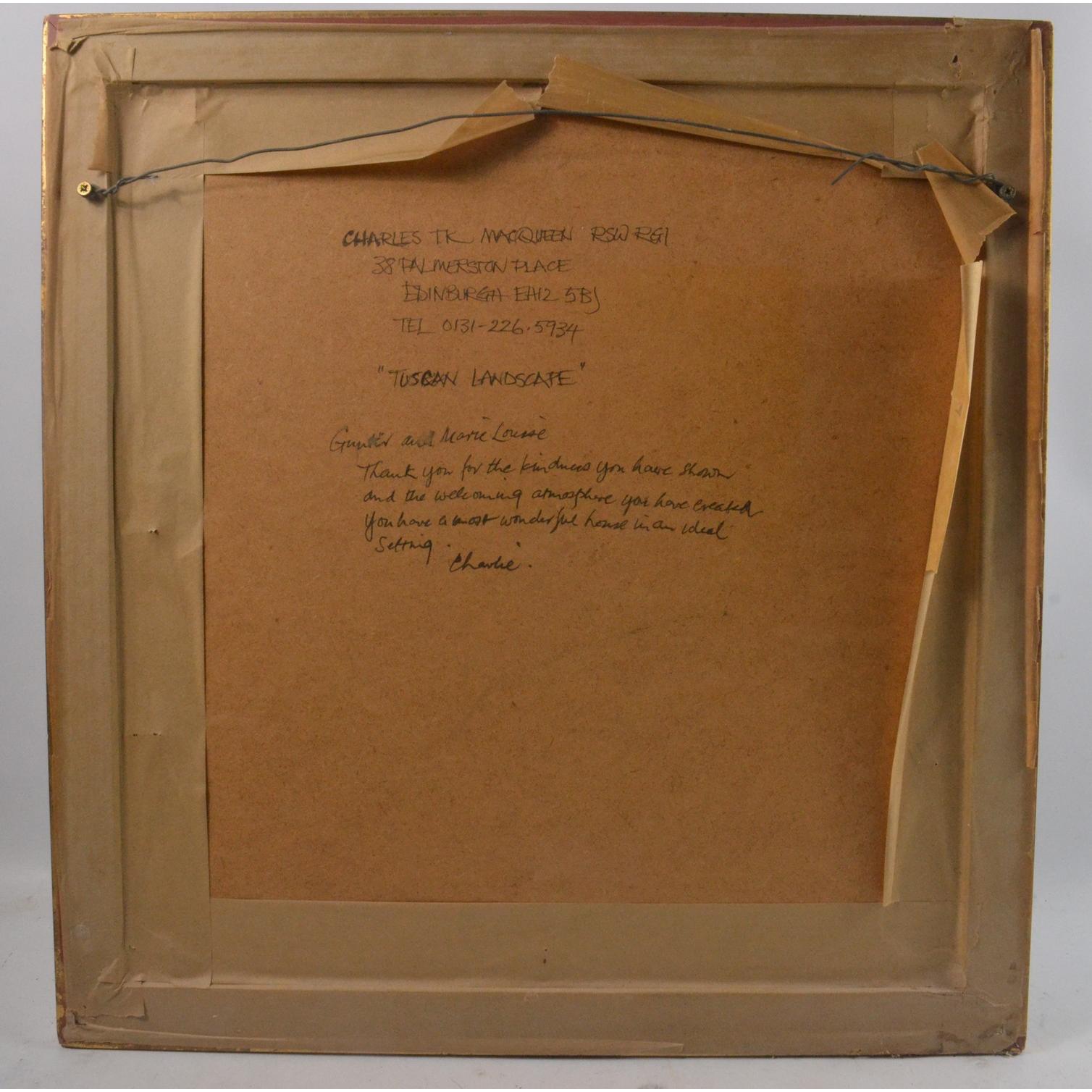 CHARLES TK MACQUEEN RSW RGI 'A Tuscan Landscape' acrylic on board 30cm x 28cm with personal message from the artist written by handL: 30cm approx H: 48cm approx