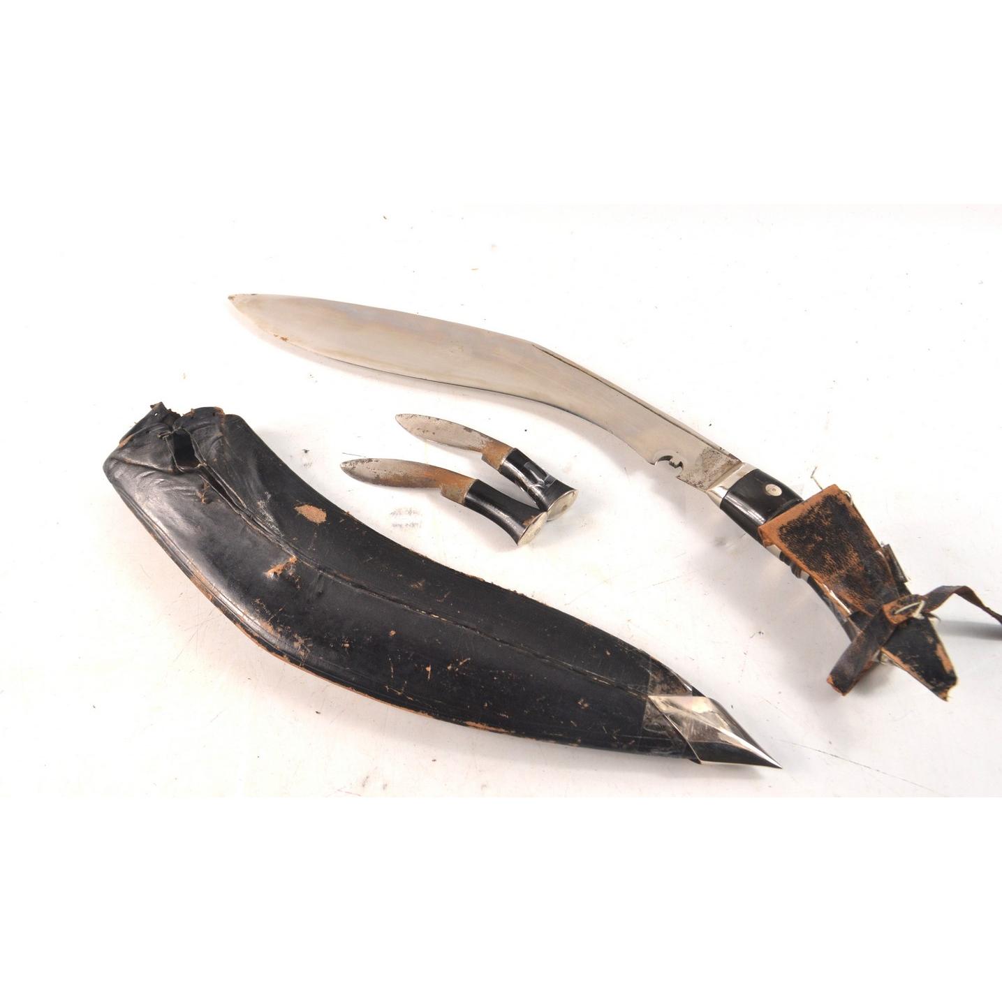 KHUKRI knife with sheath and 2 smaller knives within sheath blade length 31cm, full knife incl handle 42cm approx