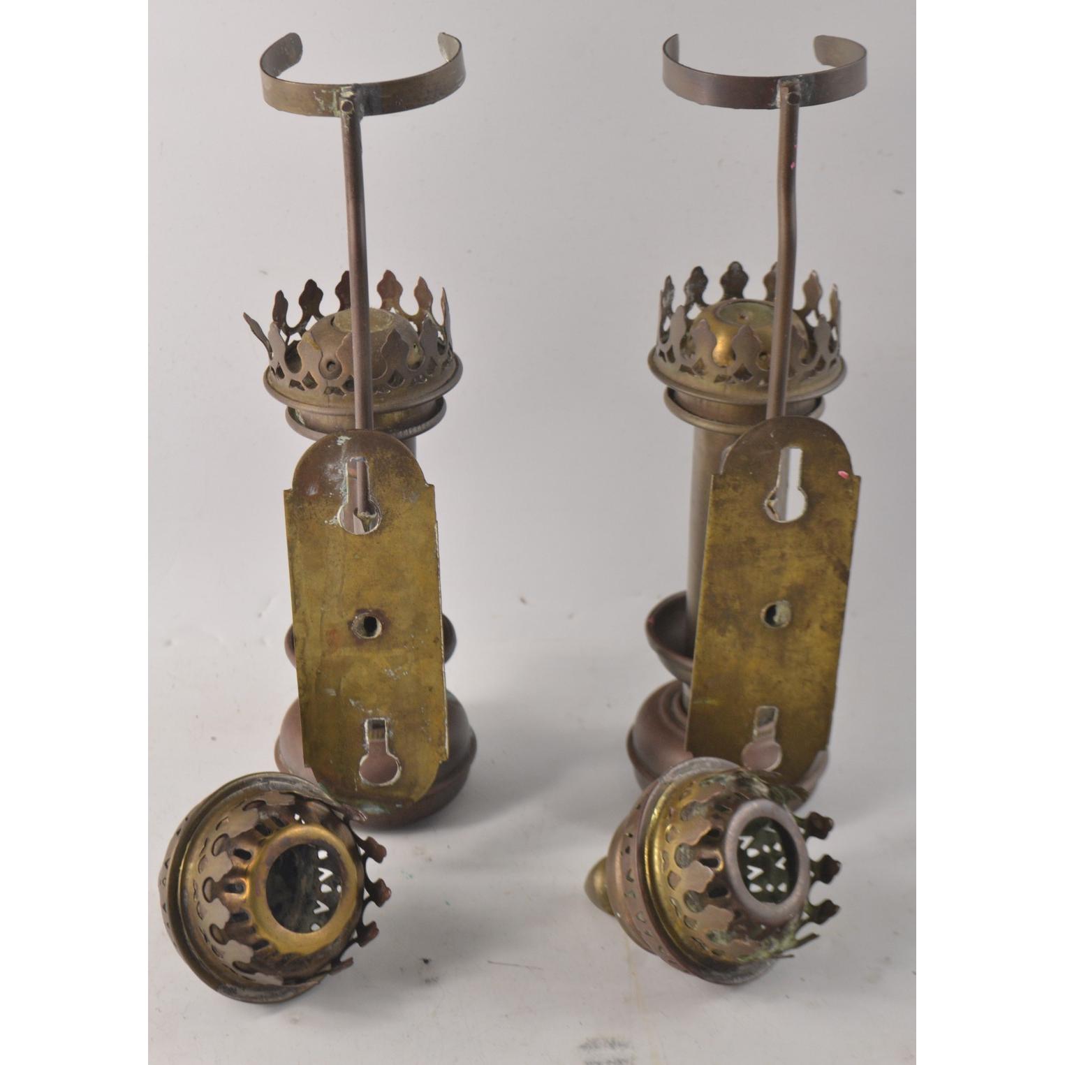 A pair of original vintage GWR railway candle carriage wall lanterns, missing glass tubes, easily replaceable.