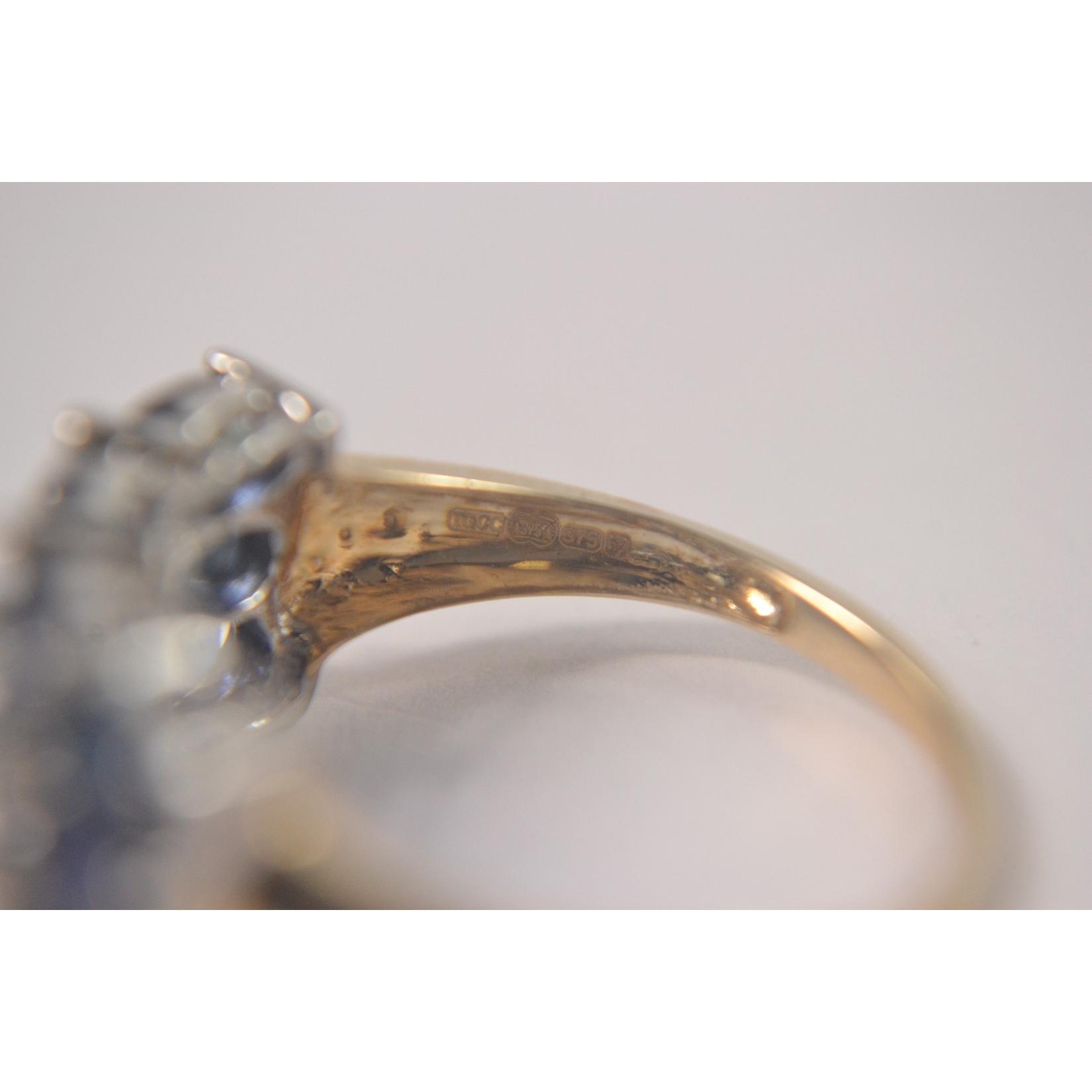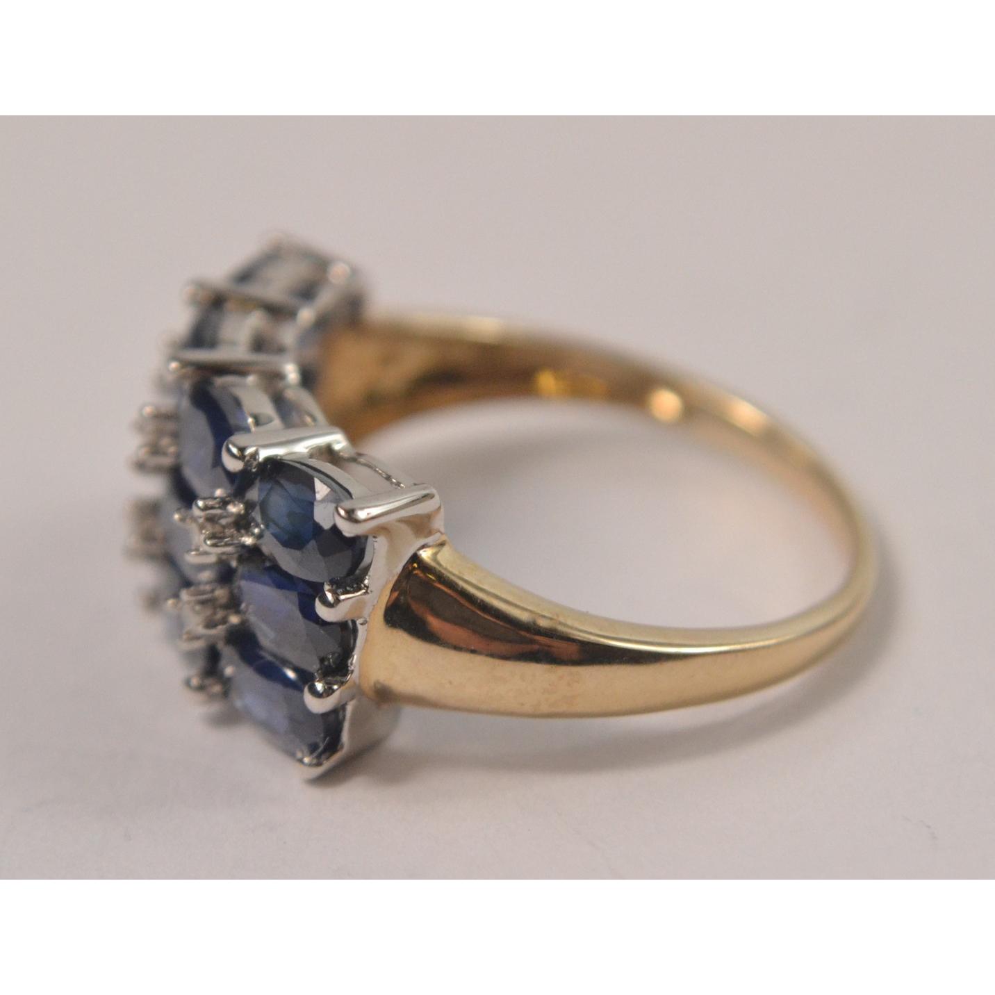 9ctYellow gold ring set with 12 oval Sapphires and 6 small diamond spacers in a rectangular design. Size Q [3.7grm]