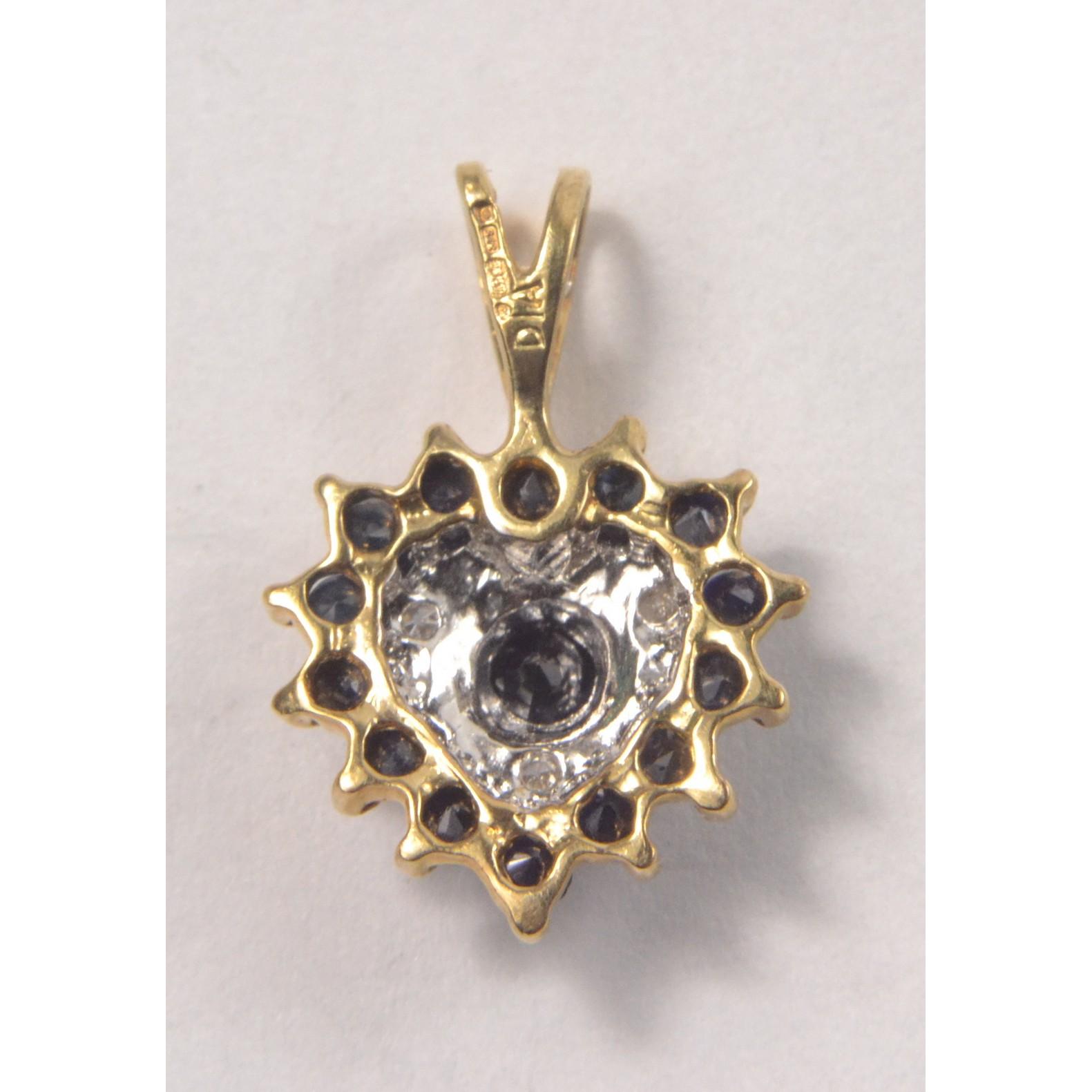 9ct Yellow gold heart shaped pendant, set with sapphires and diamonds L; 1cm approx [0.80grm]