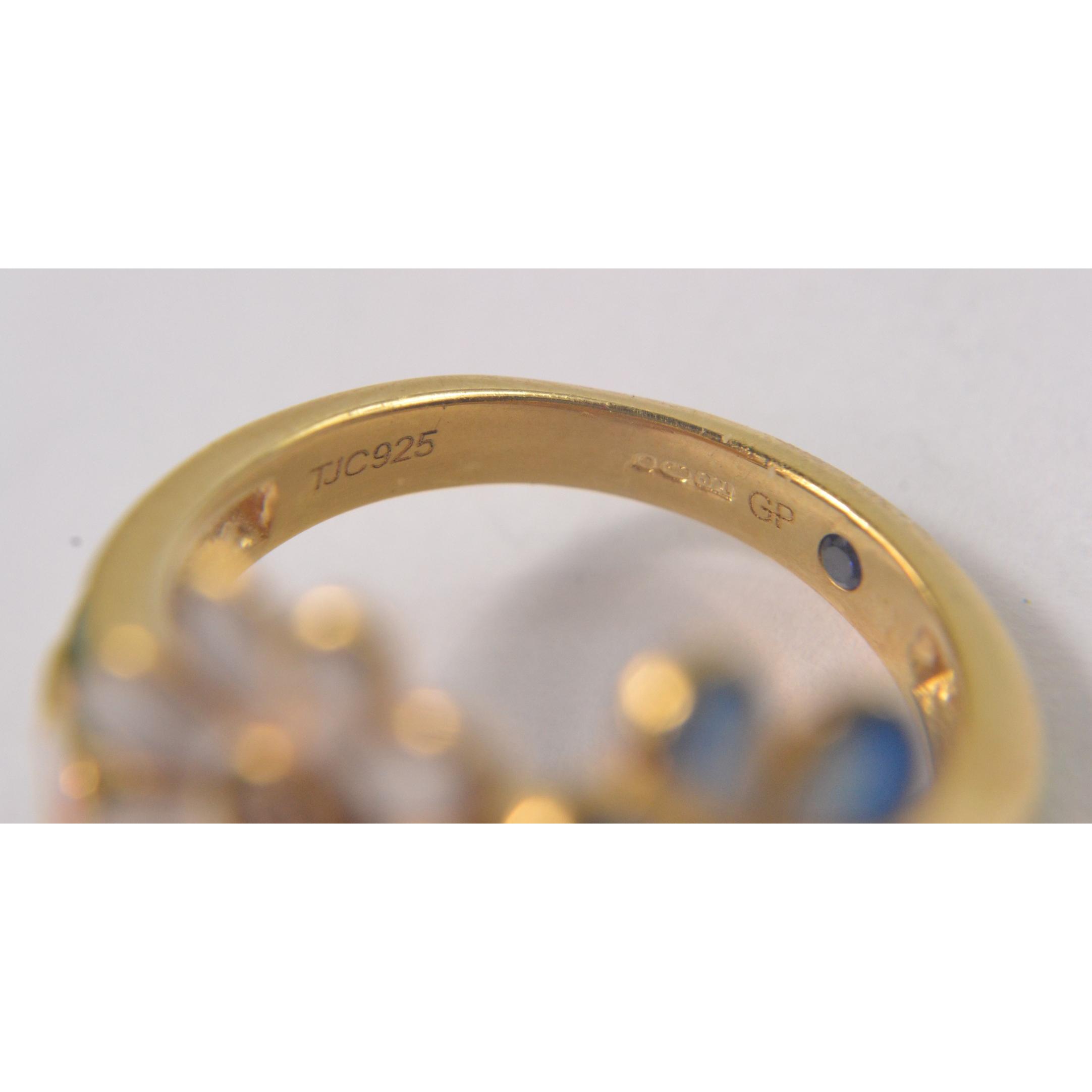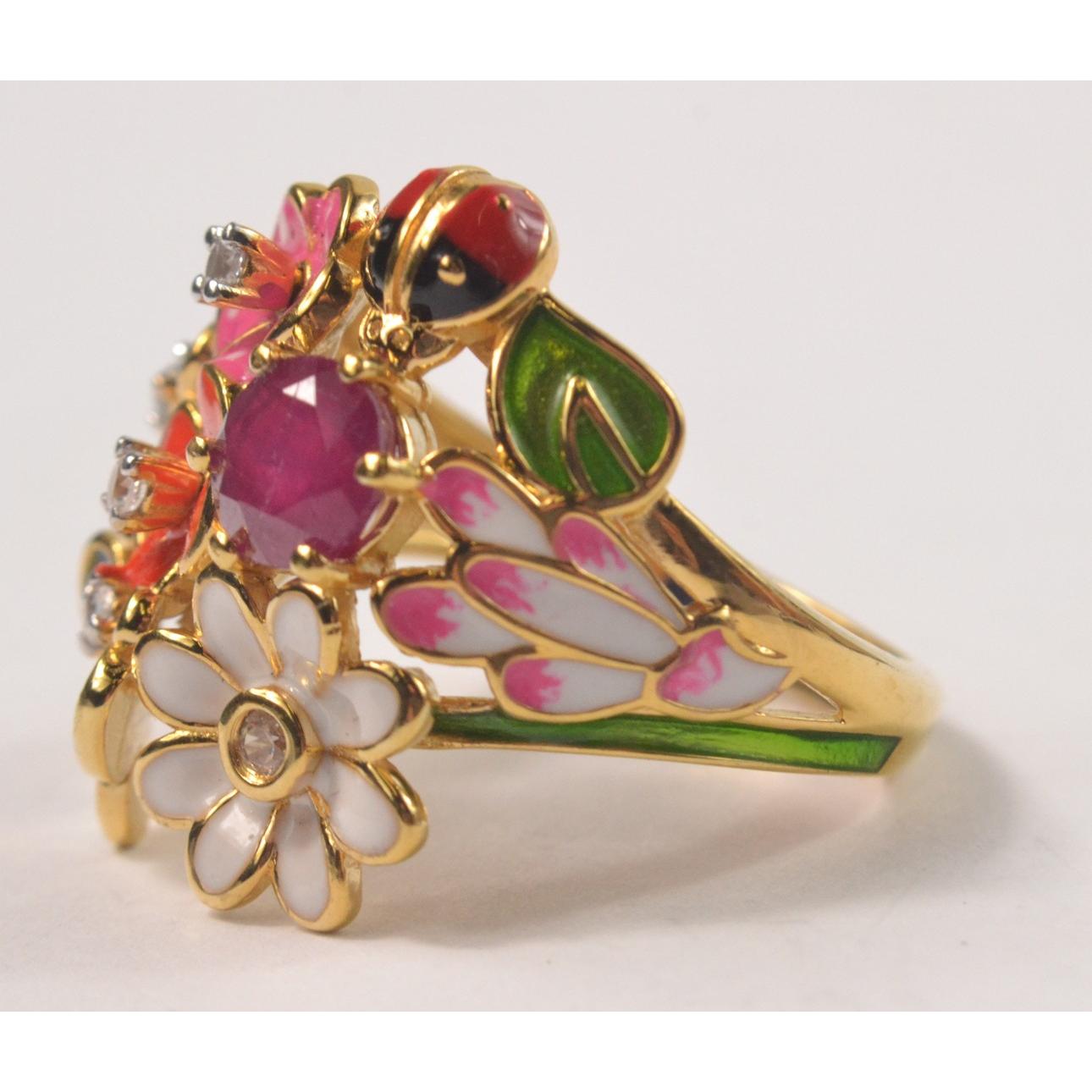 Gilded 925 stamped ring, set with enamel styled flowers and a butterfly and ladybird Size QGross weight approx 8.4grms