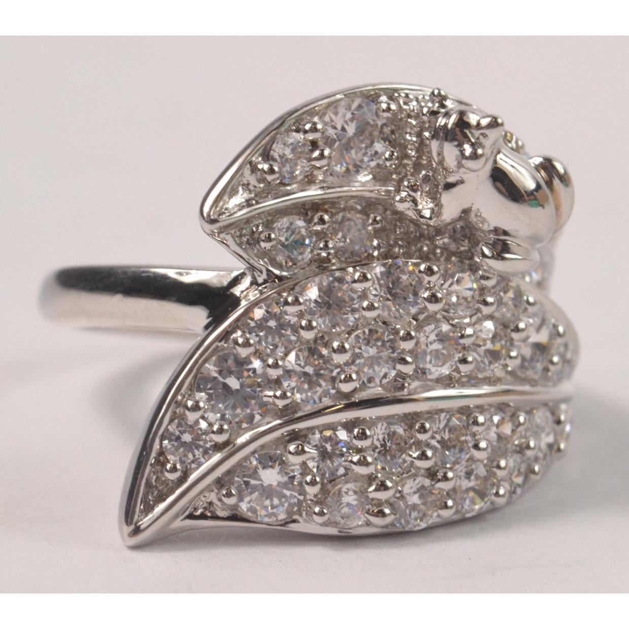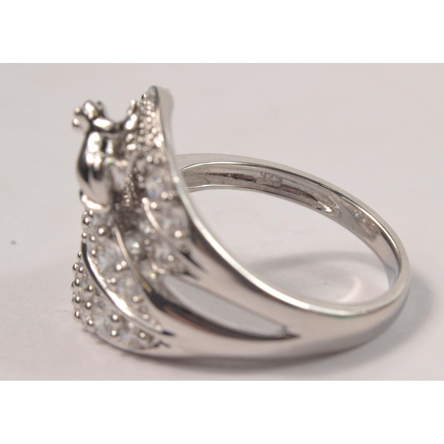925 Silver stamped ring designed as two CZ stone set leaves with a small frog sat on one Size QGross weight approx 6.2grms