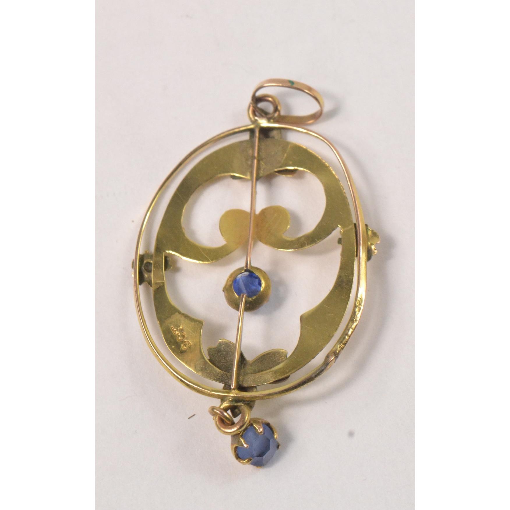 9ct stamped unusual pendant with centre blue stone(s) weight 1.45 gross, 3.5cm L approx