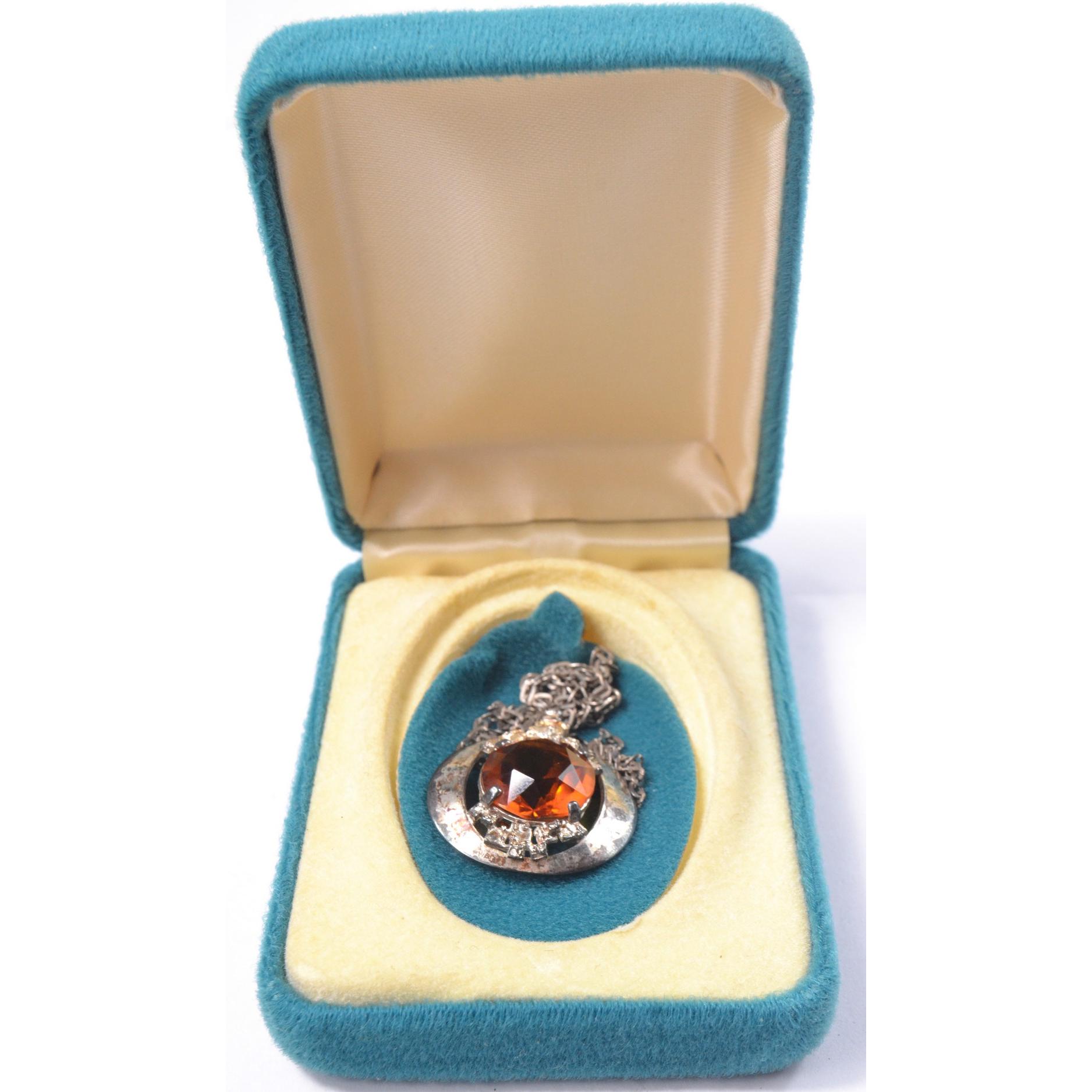 925 stamped Scottish pendant with large amber stone 3cm Length on a STERLING silver stamped chain gross weight 9.02g