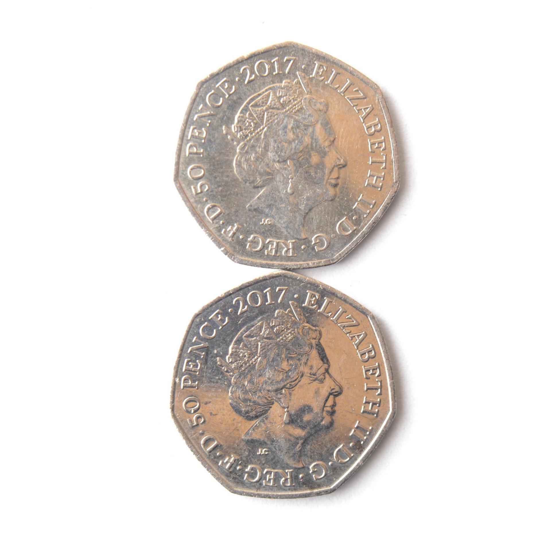 A collection of 2 PETER RABBIT fifty pence pieces 2017