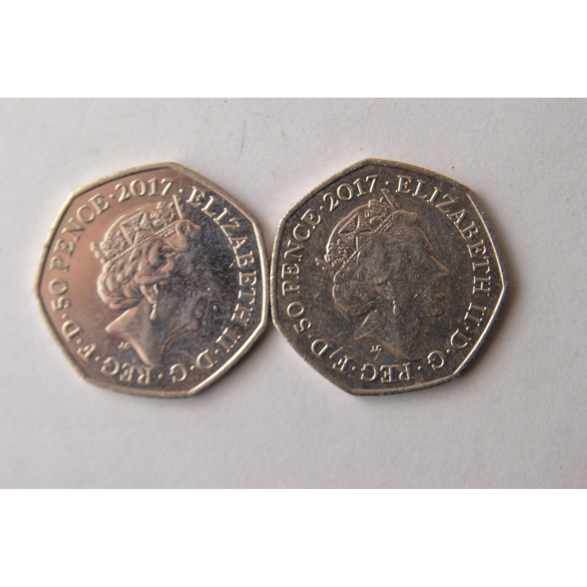 A collection of 2 PETER RABBIT fifty pence pieces 2017
