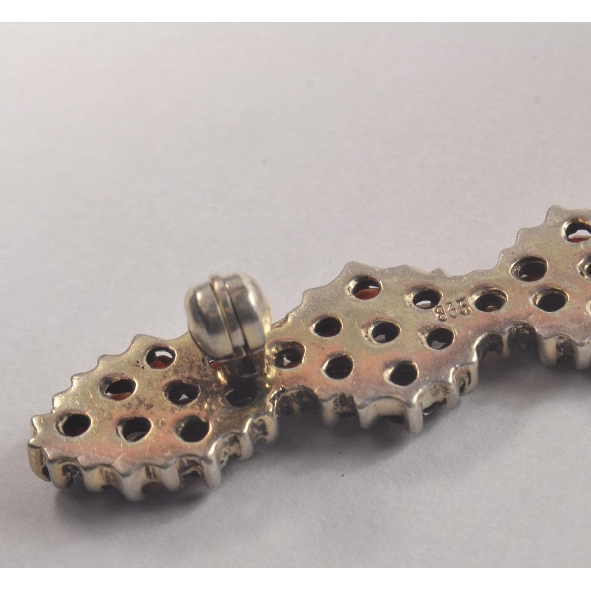 Vintage 835 Silver stamped Garnet set comprising bar brooch, earrings and drop pendant