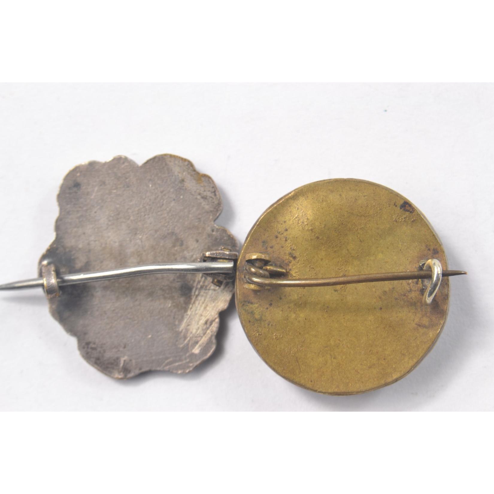A Victorian miniature micro-mosaic brooch intricately, possibly Italian, SO BEAUTIFUL! 2 cm Diameter , and also a white metal Art Nouveau small brooch in a fairy-like design 2.5cm length.