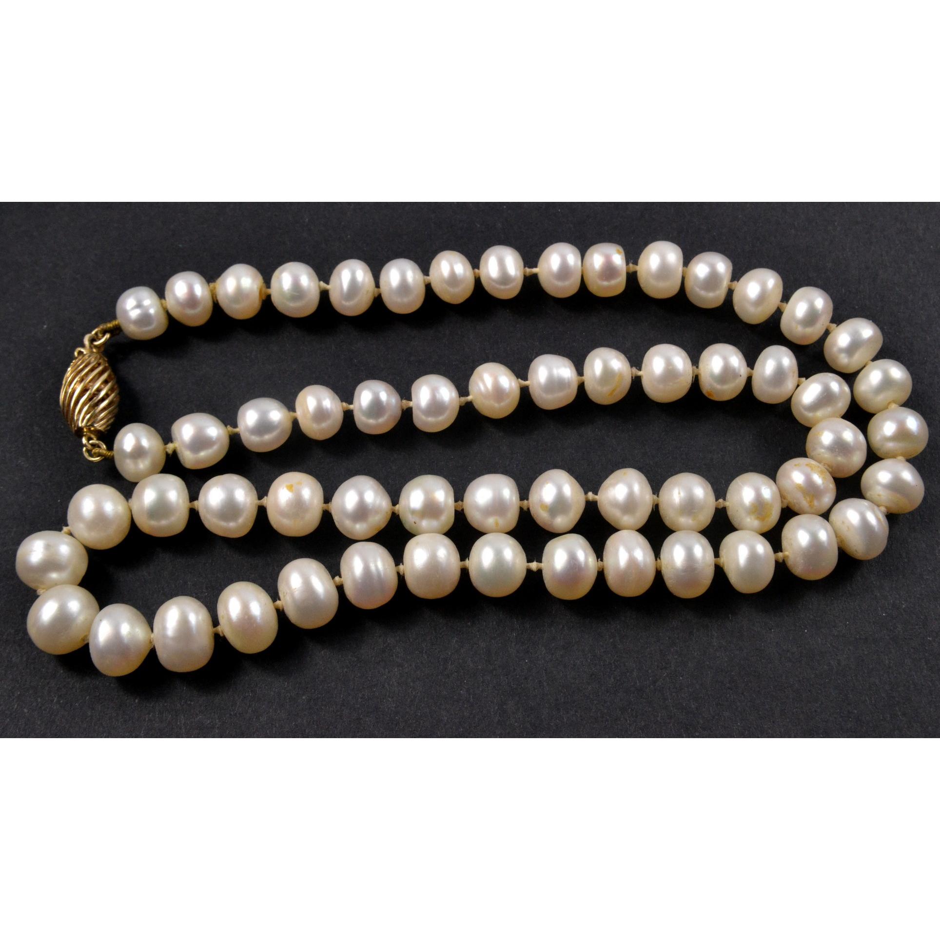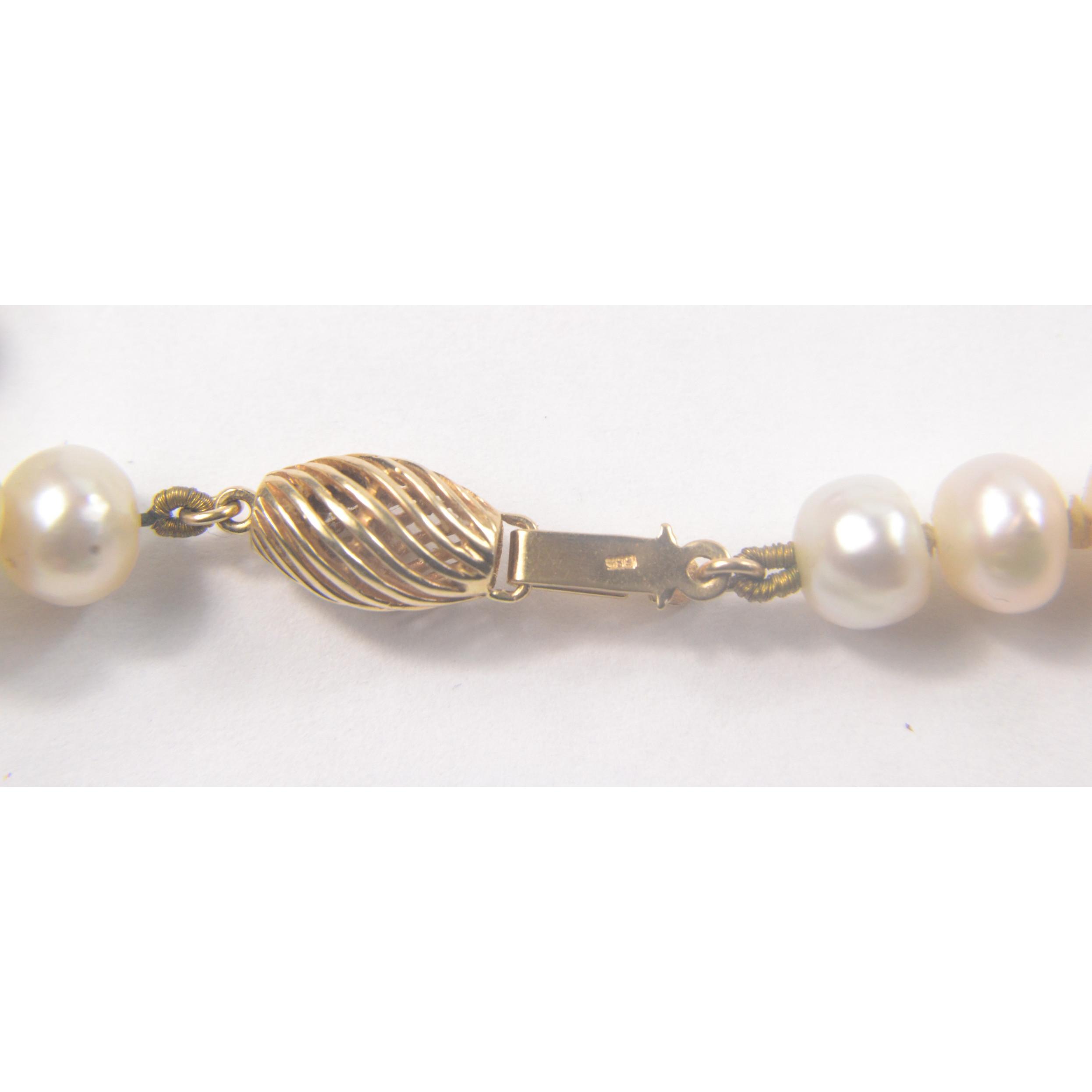 String of white baroque pearls with 585 barrel clasp [L: 42cm]