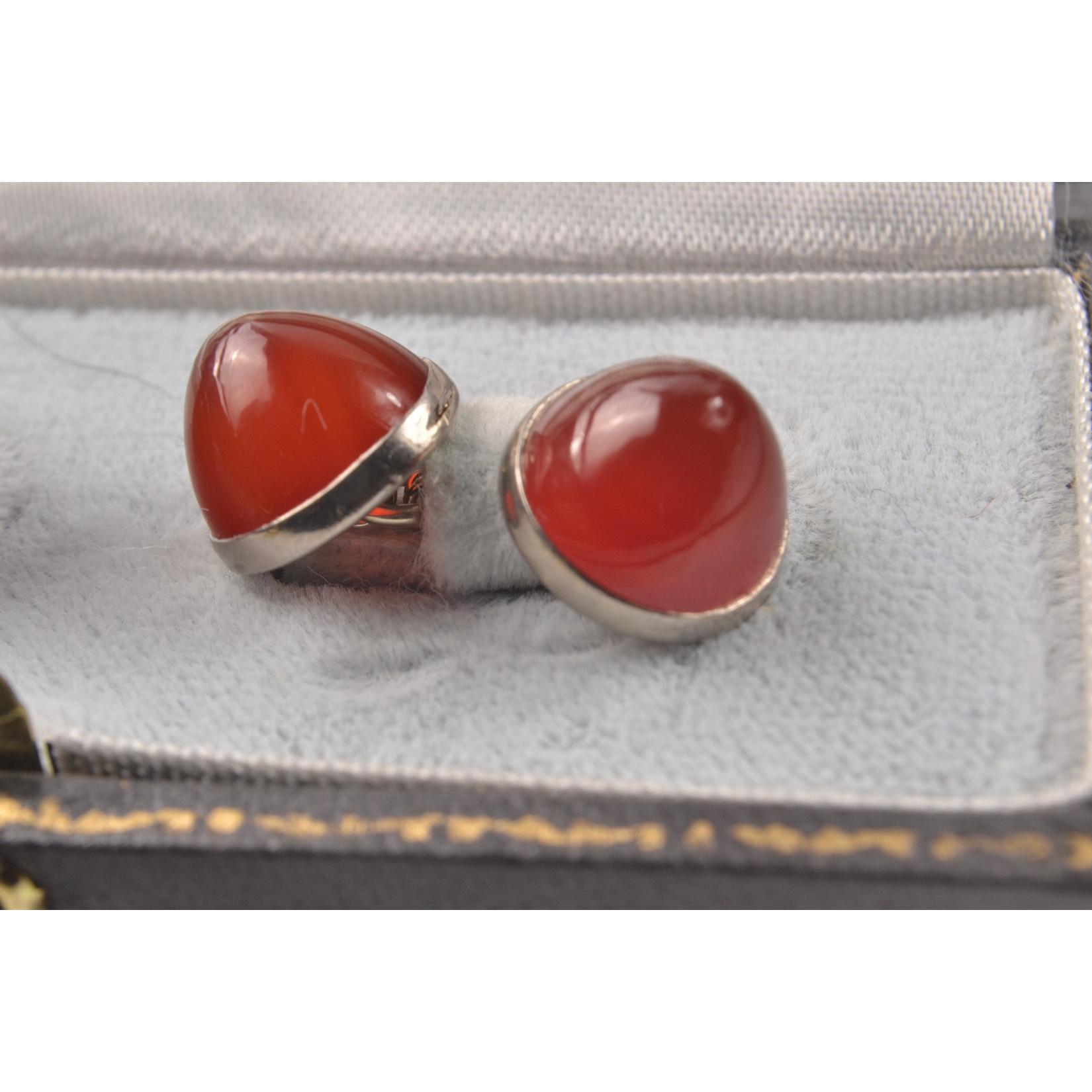 Victorian silver red stone cufflinks. Possibly amber. W: 1.2cm approx Gross weight approx 11.3g