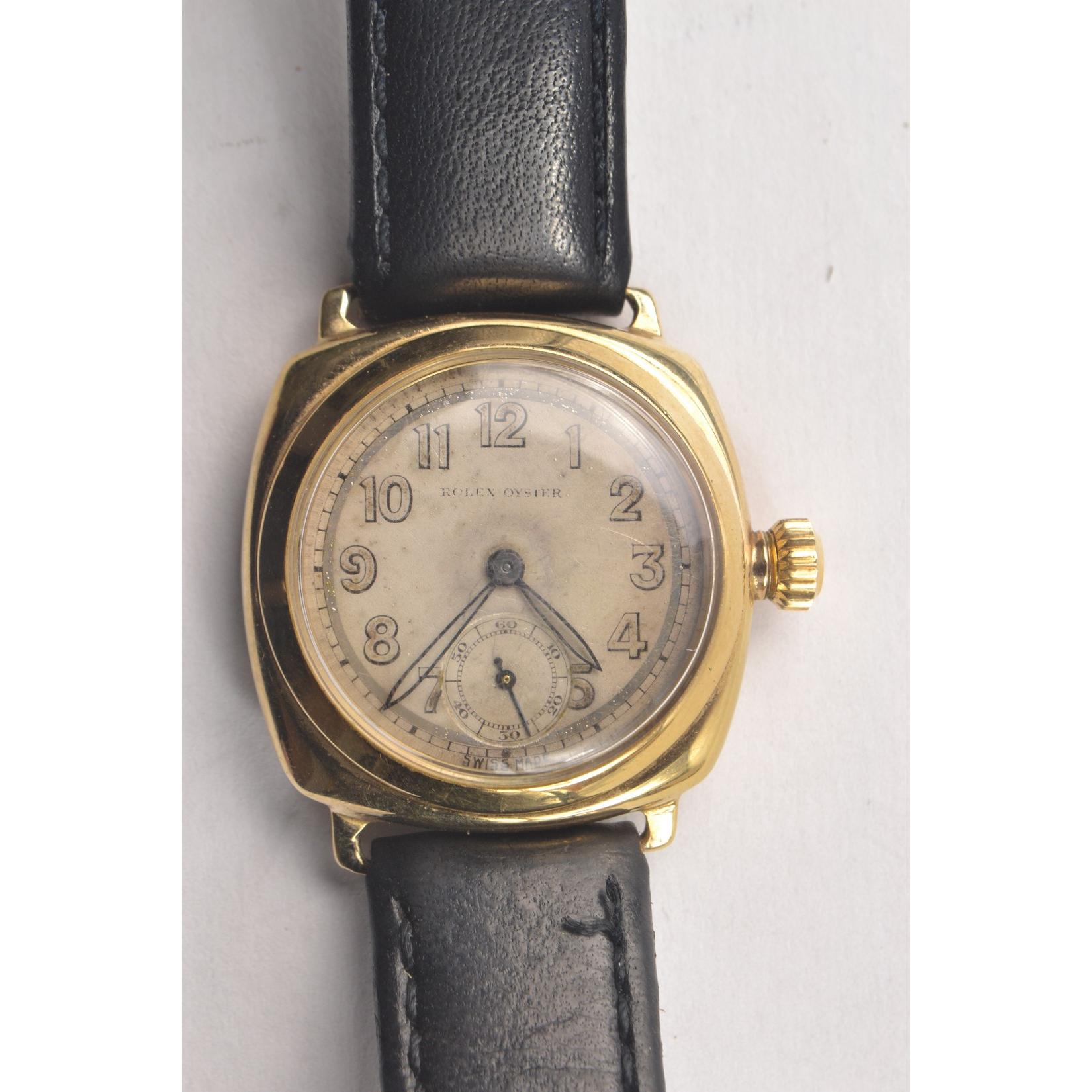 Rare 1920's vintage bubble back Rolex Oyster wrist watch with second hand dial. Has black leather strap and stamped on back is 39917, 2949, all parts look original.