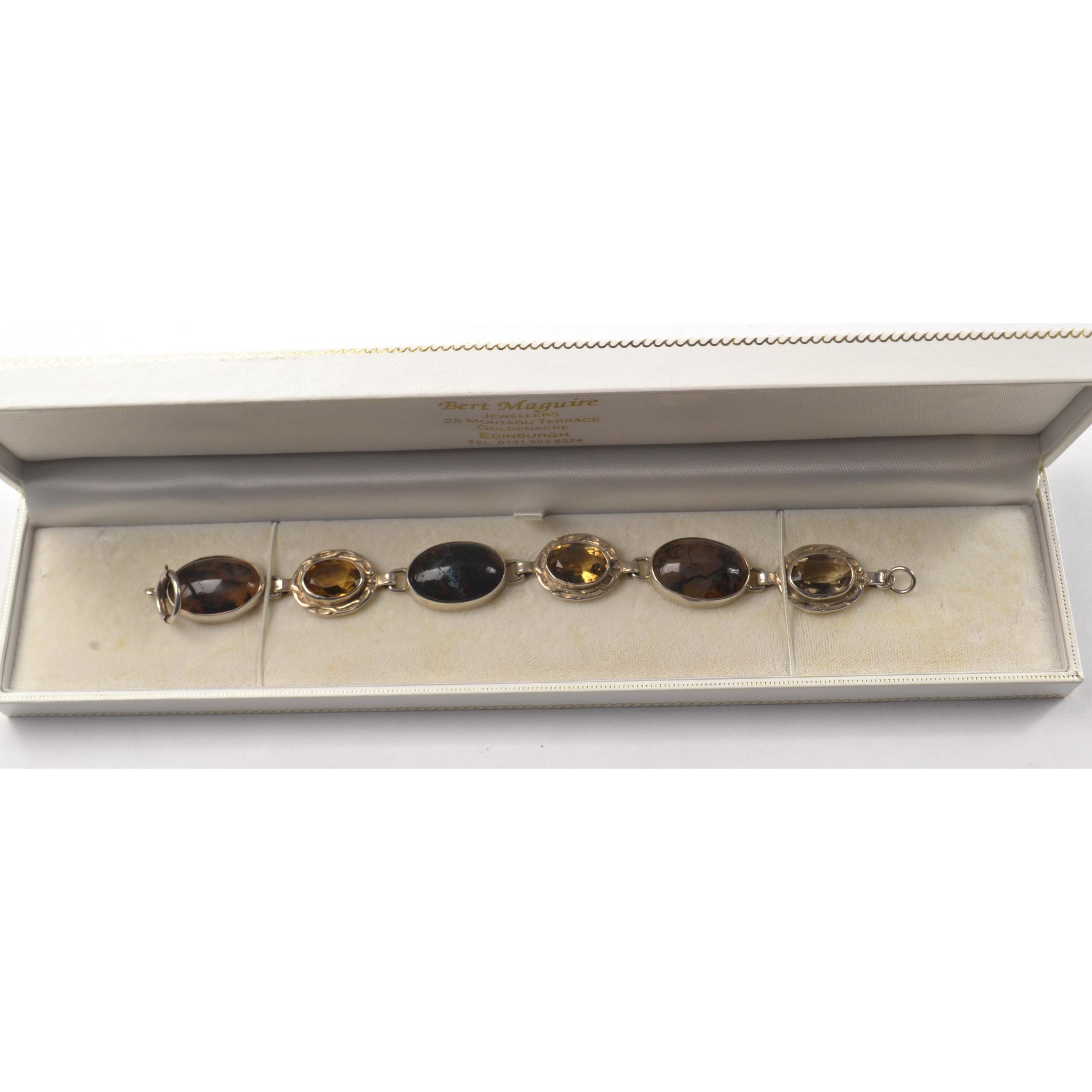 Scottish silver bracelet set with 3 agate stones and 3 citrine stonesL: 17cm approx Gross weight approx 27.4grms