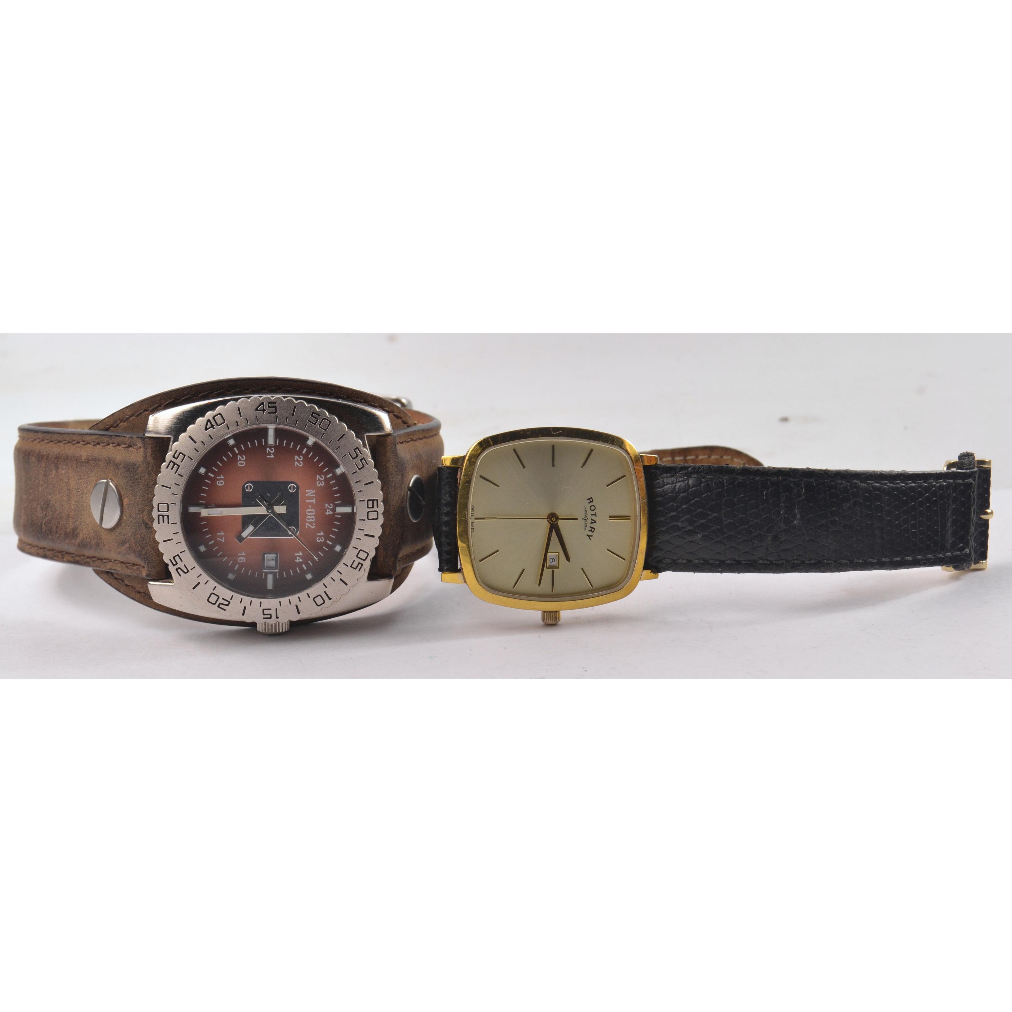Bag containing 4 gents wrist watches, Rotary square face, Lorus unuasal shaped, Bering circular and one other.