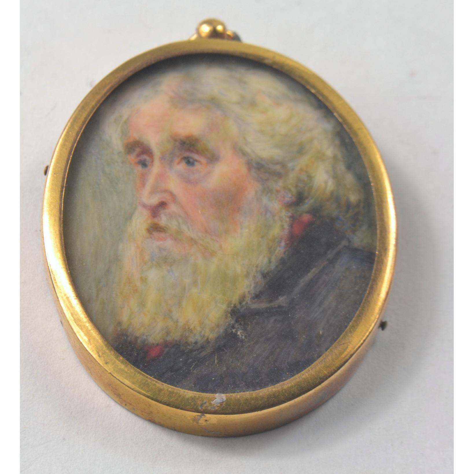 Victorian miniature watercolour oval portrait 'An Old Fisherman'