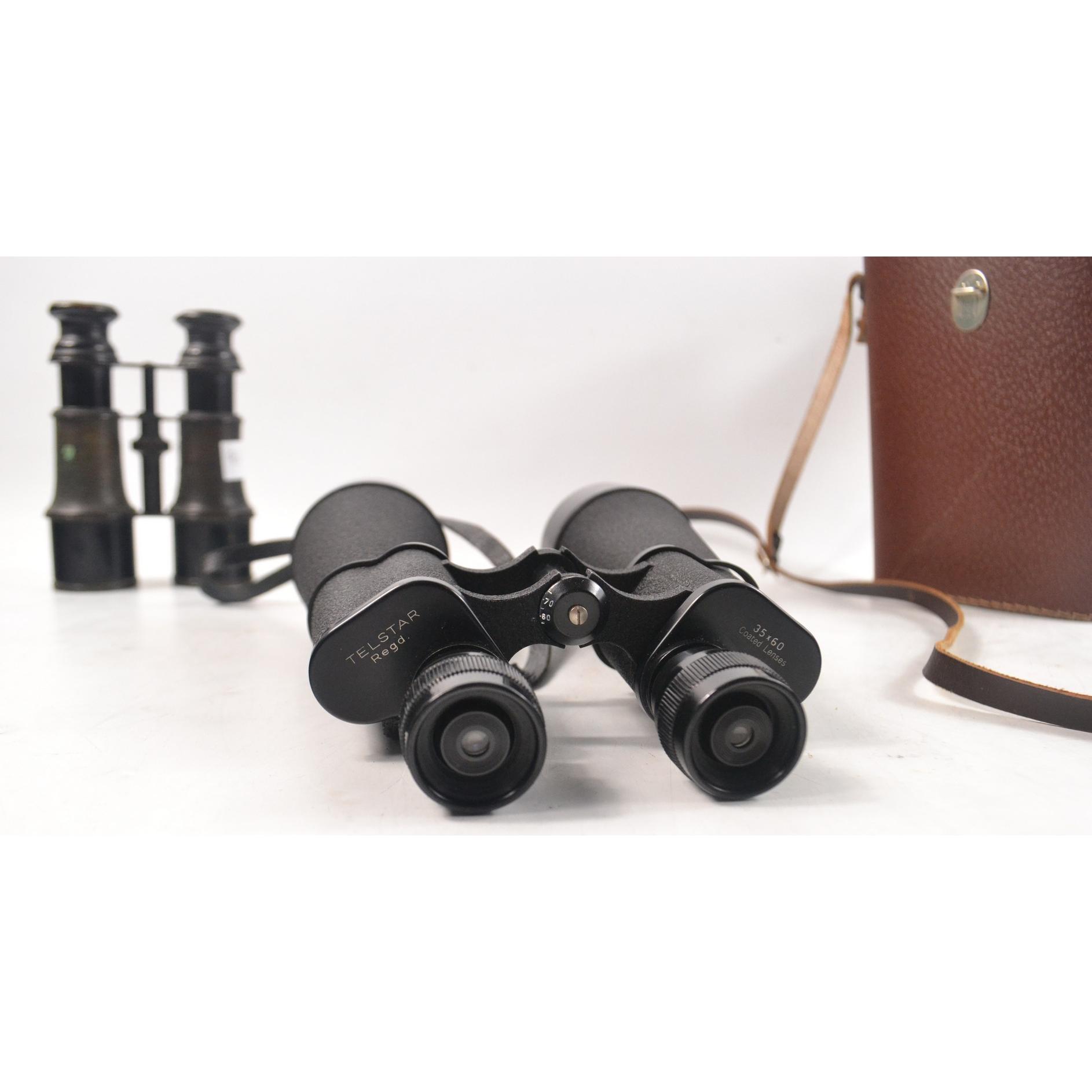 A set of TELESTAR binoculars 35 x 60 coated lenses within it's original leather case and an old vintage early 20th century pair of binoculars (no maker) Approx 2 pieces