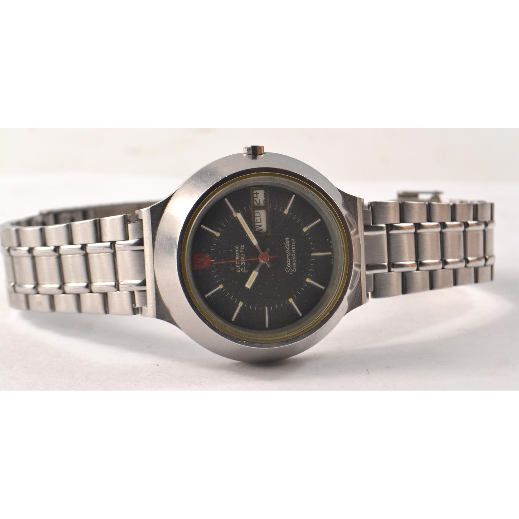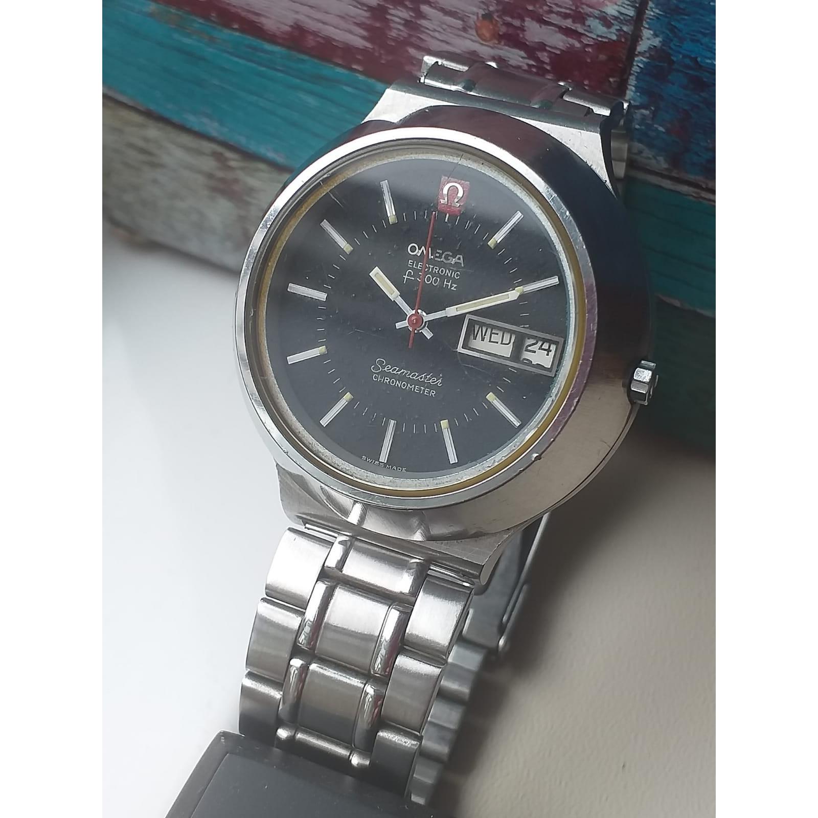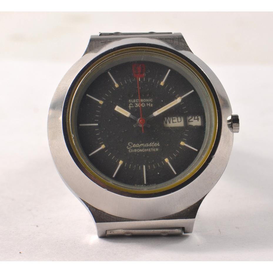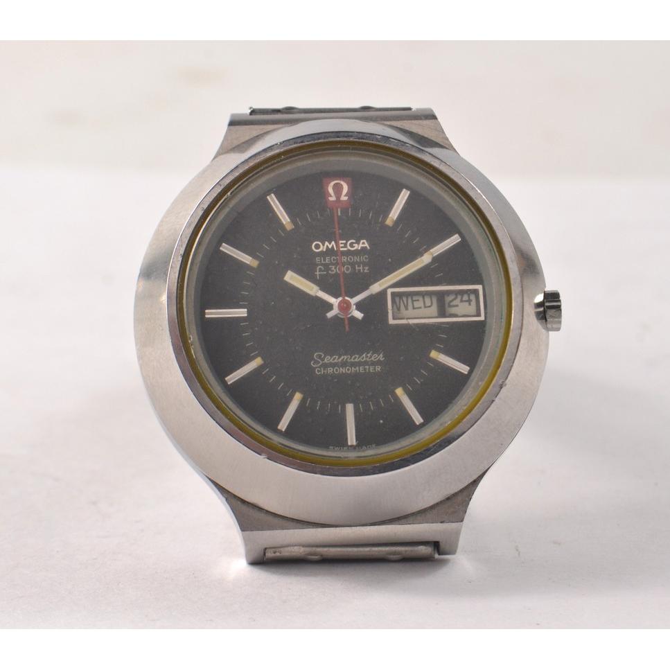 RARE c1972 SS OMEGA SEAMASTER CHRONOMETER DAY DATE ELECTRONIC F300HZ CHRONOMETER, outwardly in good condition, in working order at time of valuation, only issue to note is the small water-tight rubber seal is in need of replacement within the watch itself, see pics, otherwise in good overall condition.
