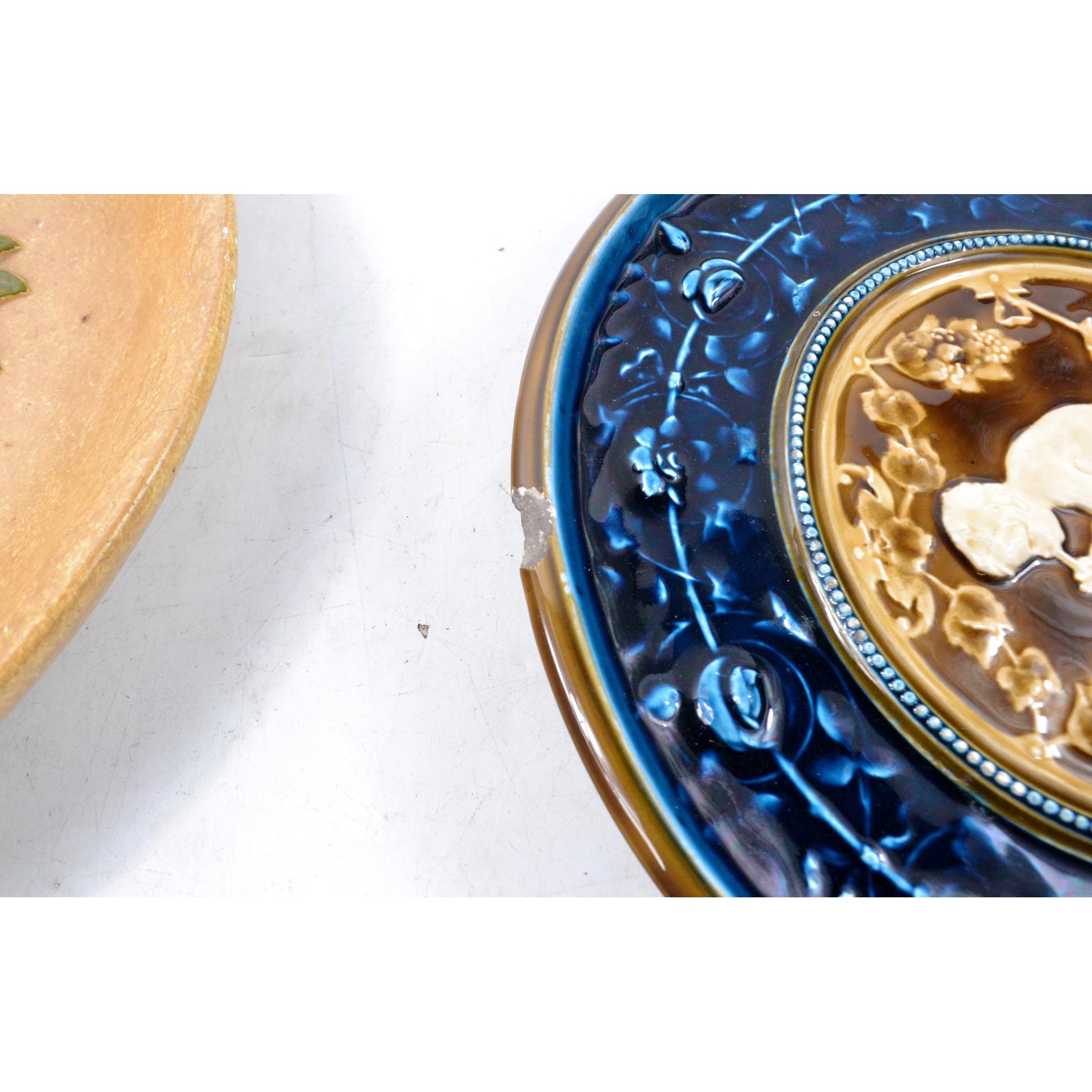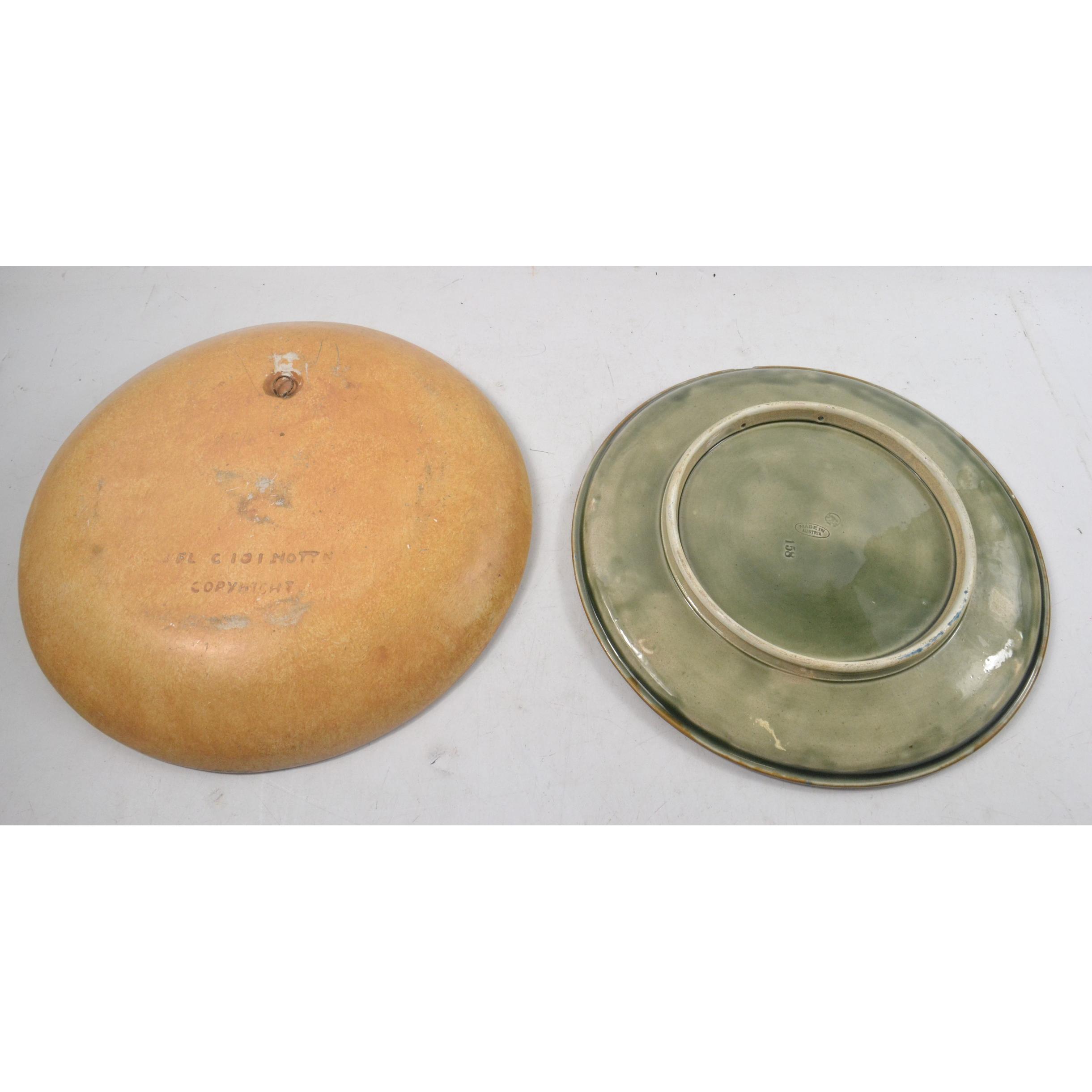 Vintage wall plate 'plaster of Paris style' wall plate in a case of flowers pattern, diameter 33cm with a ceramic wall plate 30cm Diameter