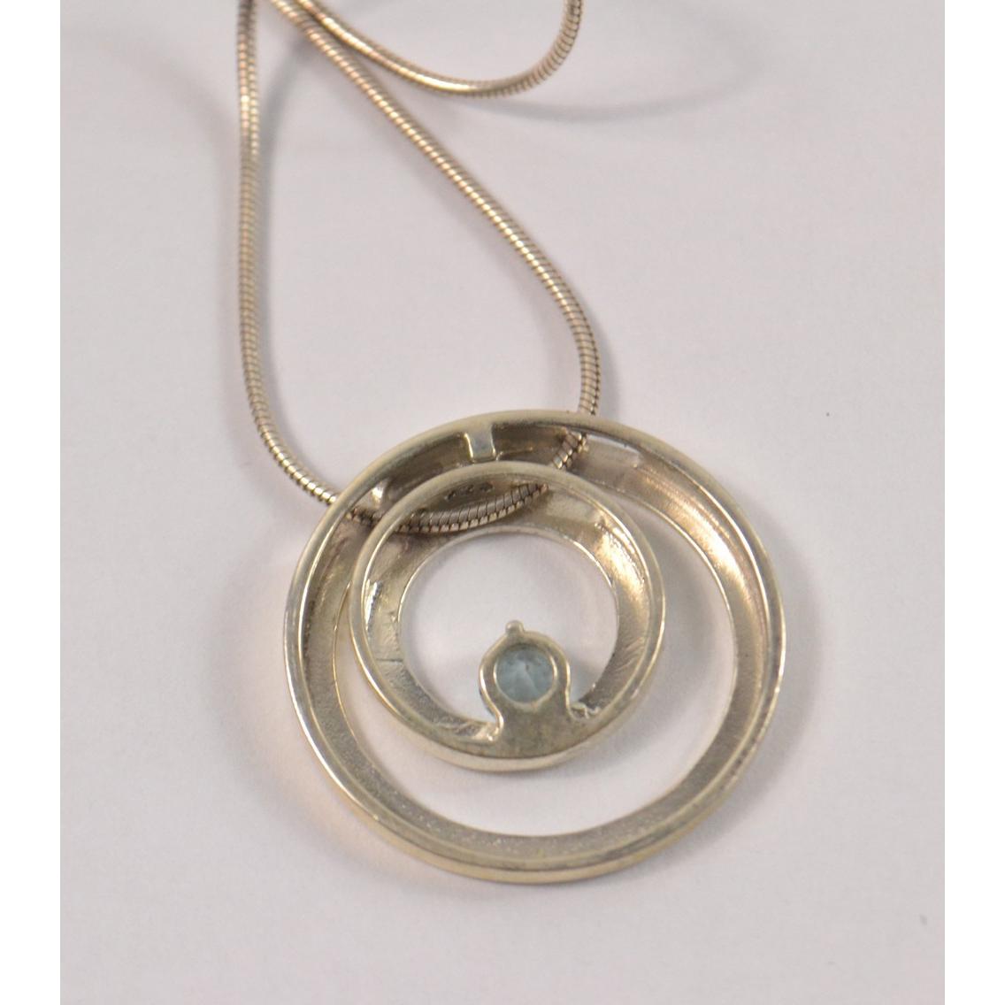 Boxed Hot Gems silver pendant of double circle design with pale blue stone set in inner circleD: 2cm diam approx Gross weight approx 5.5grmm