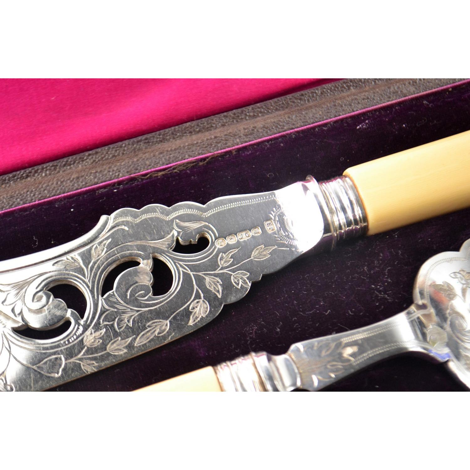 Plated Fish serving set with bone handles, in original box