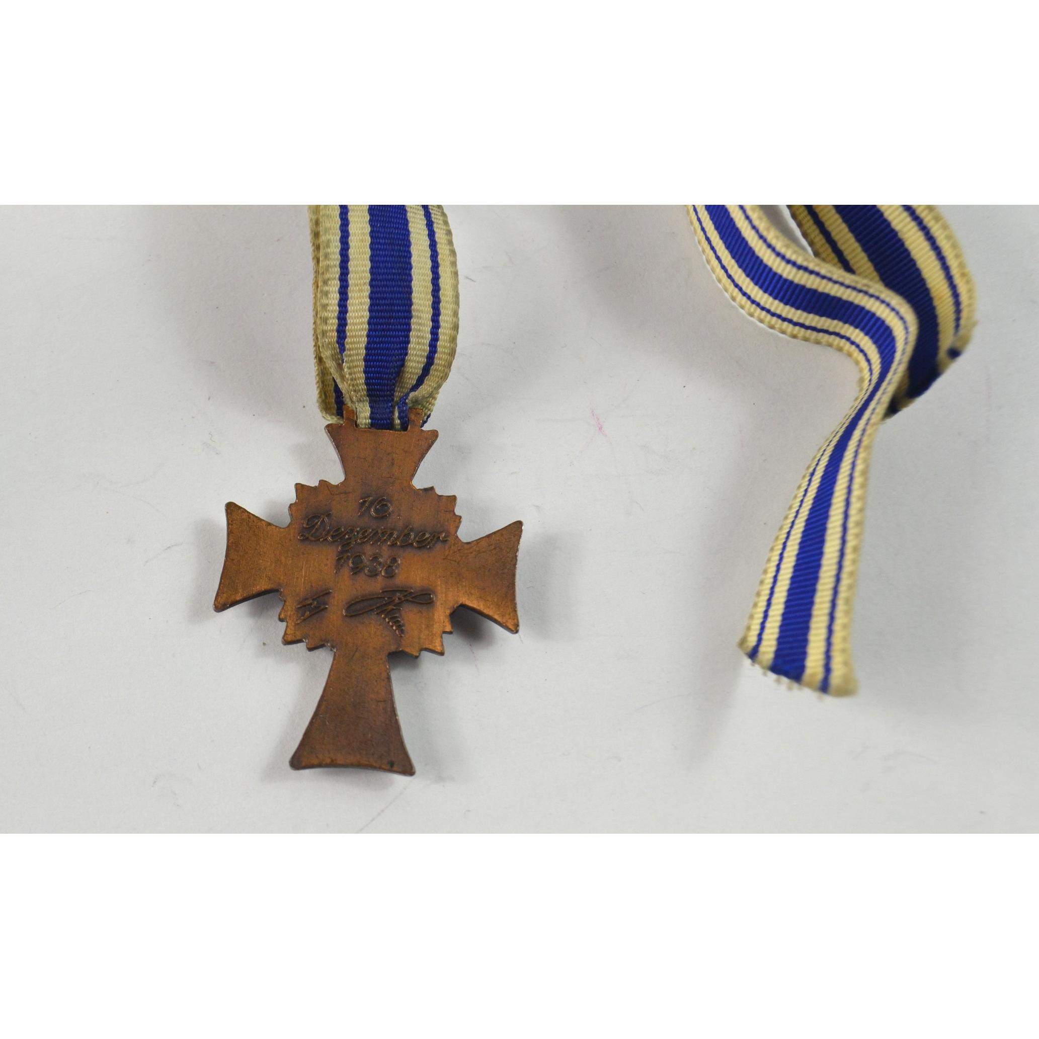 NAZI Motherhood WW2 across with its original ribbon 16th December 1938 inscribed verso