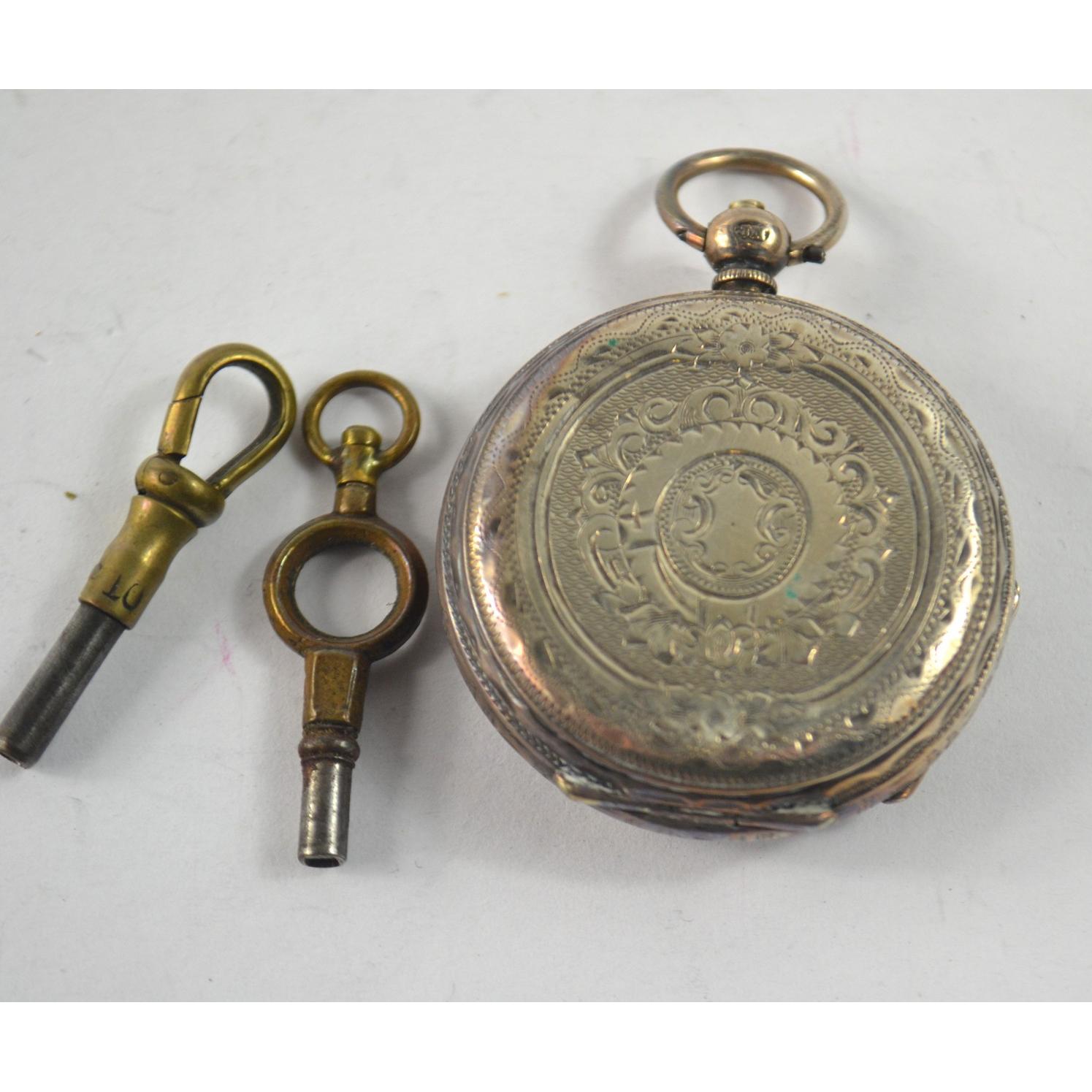 Ladies Birmingham silver pocket watch with 2 keys Diameter 4cm gross weight 42.1g