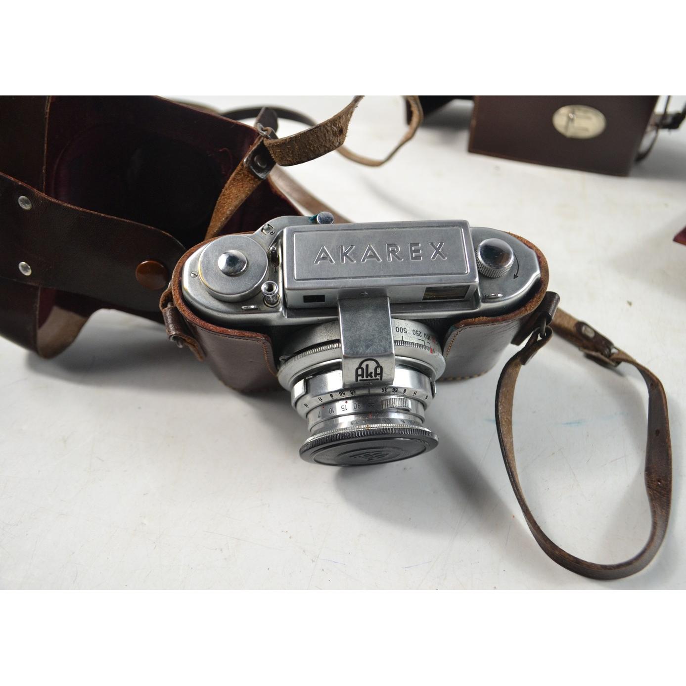 German made AKAREX Schneider lens 1: in original case with a spare lens case and an AKAREX synchro Compur vintage camera with original case