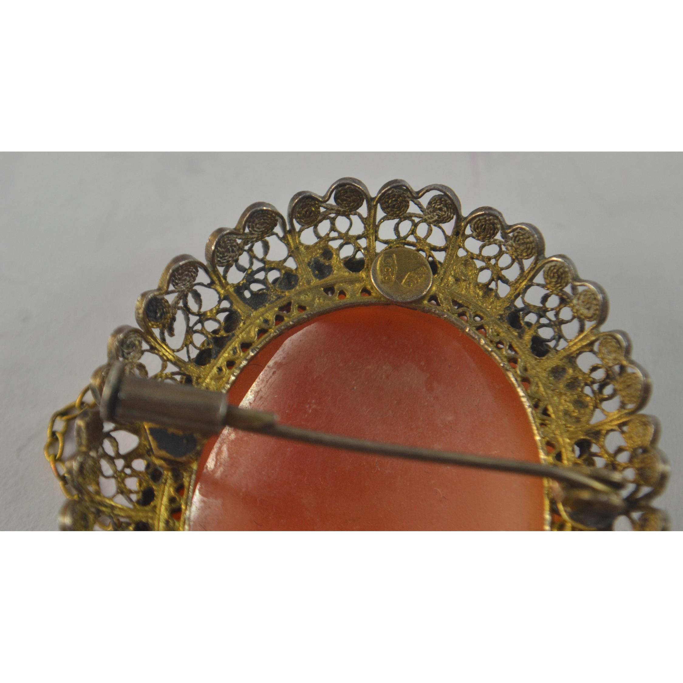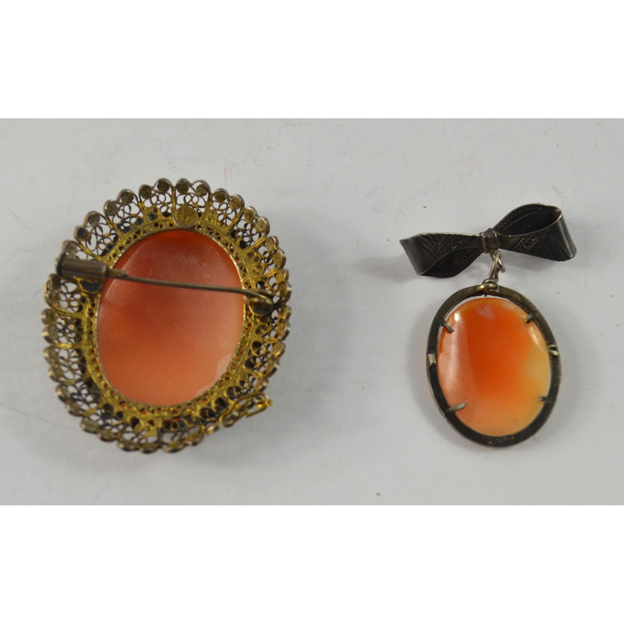 A pair of vintage Cameo brooches, largest 15.5g gross and 5 cm length and smaller Victorian white metal one 4.54g gross 3cm lengthApprox 2 pieces