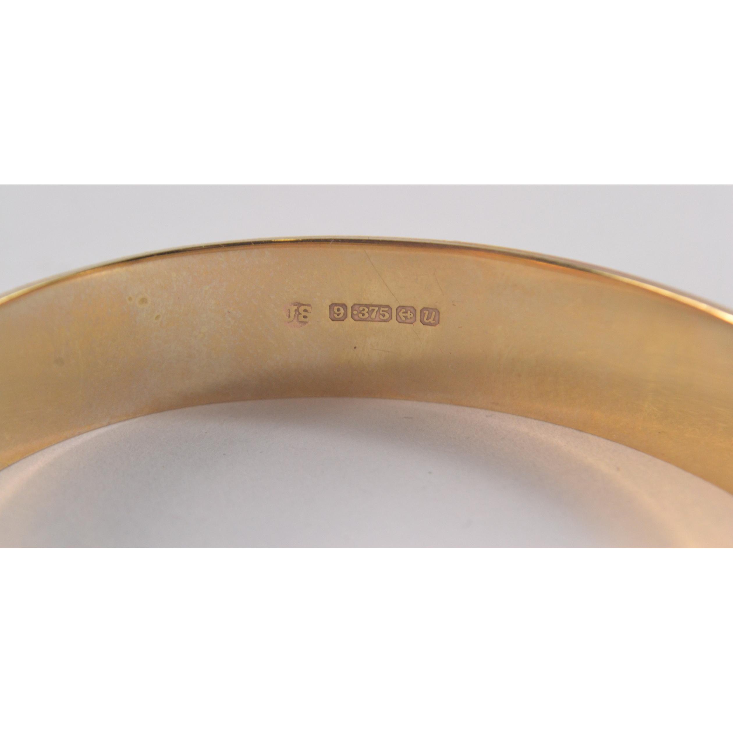 375 stamped and Hallmarked yellow Gold snap-shut bangle 17.21g approx - nice example!Gross weight approx 17.21g