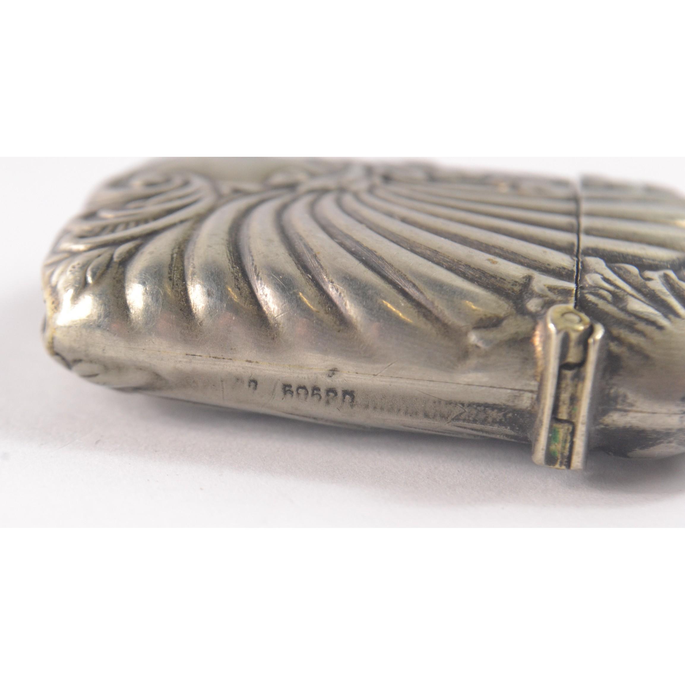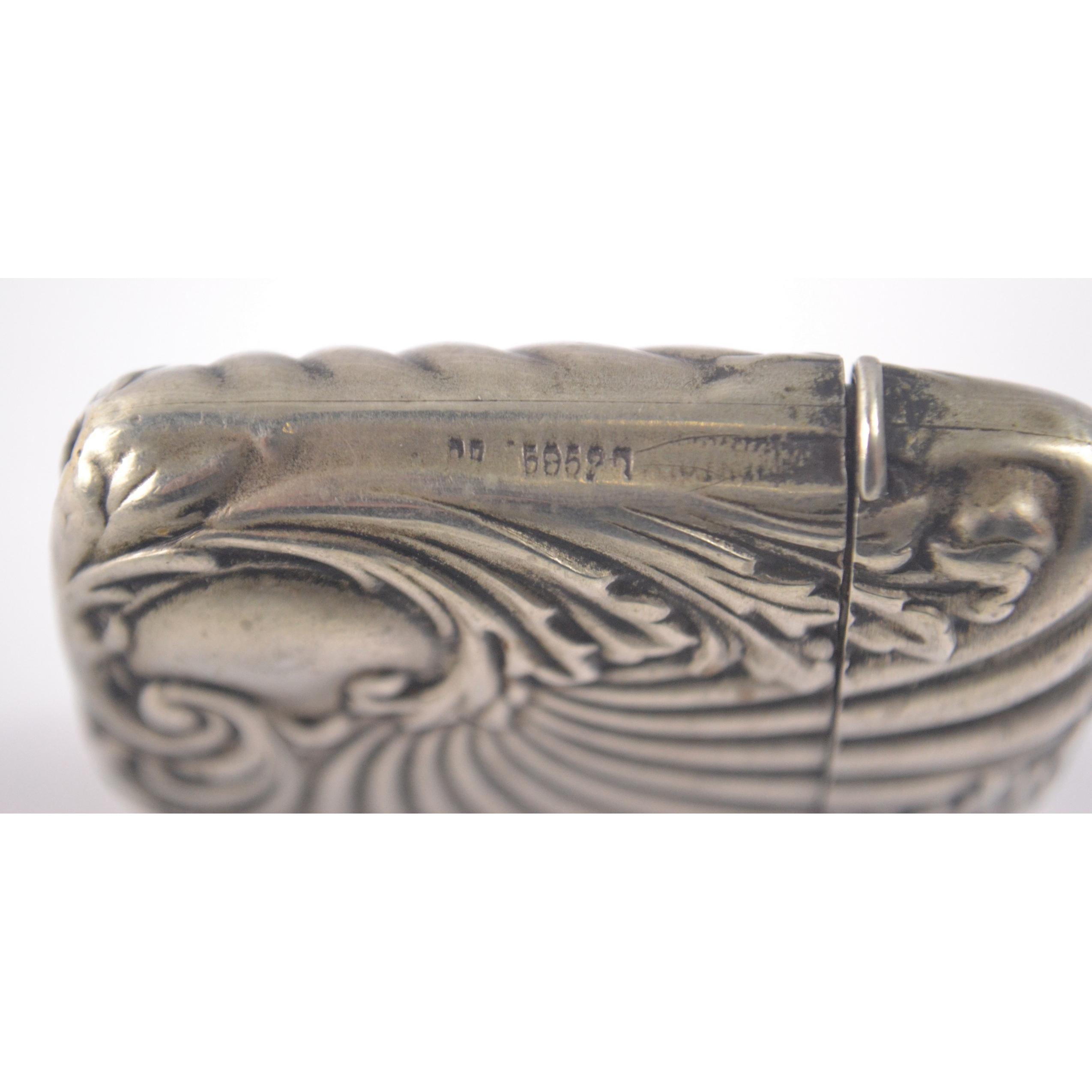 Unusual ART NOUVEAU styled striker vesta case with silver smith maker stamp on lip of case, however no silver marks visible, monogram within design H: 5cm approx