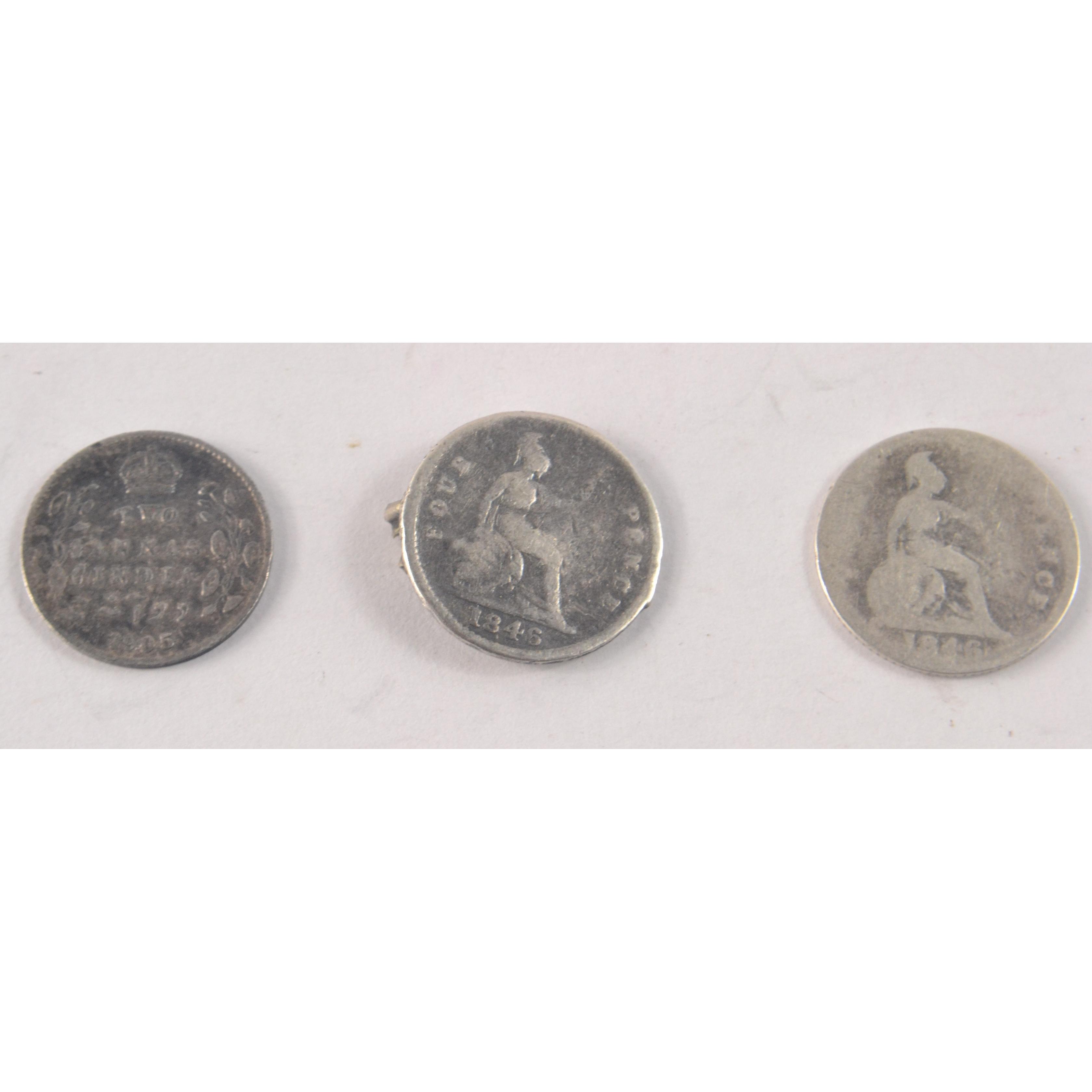 Two Silver Victoria 1846 groats and an Edward V11 Indian silver coin1905Approx 3 pieces
