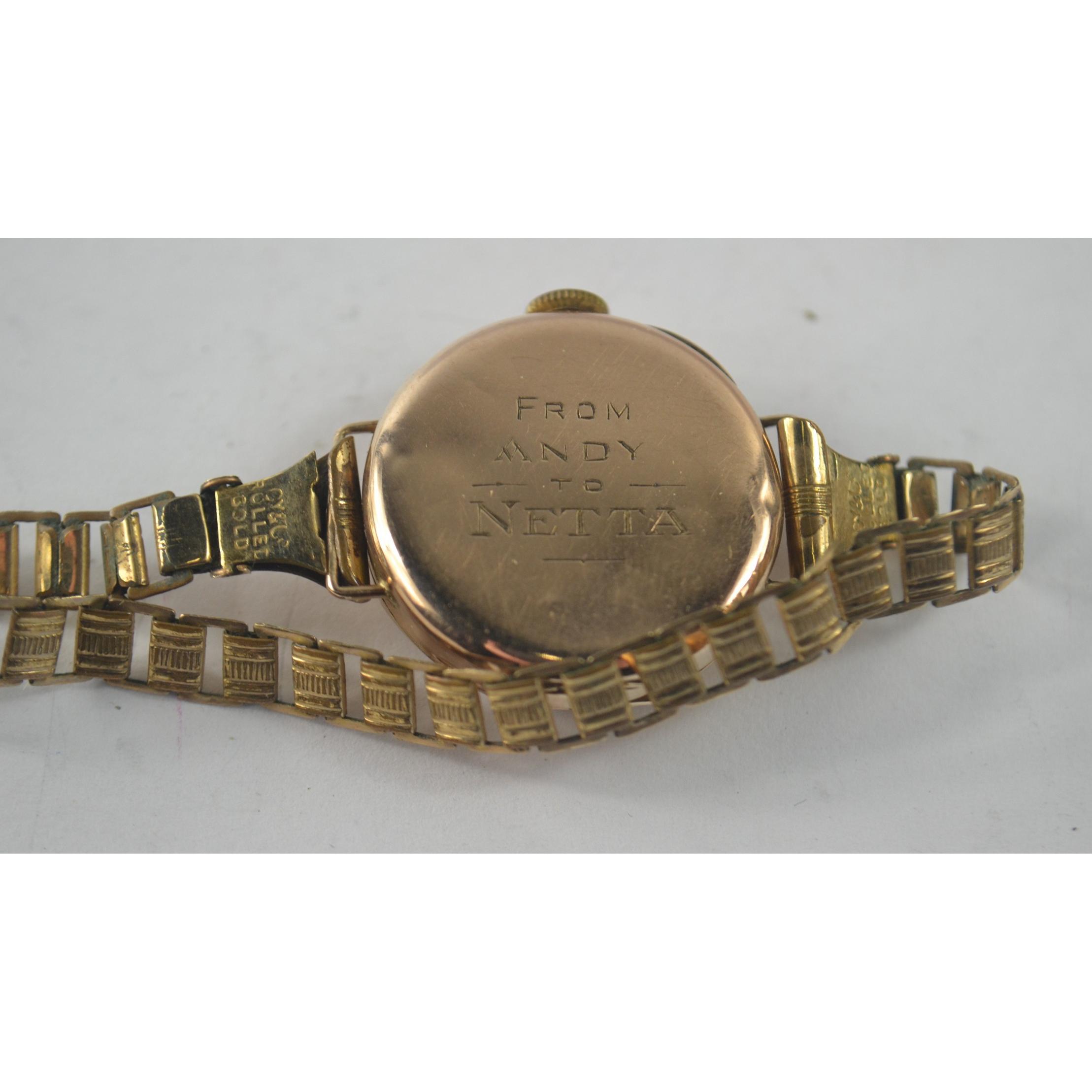 A 1926 375 stamped ladies wrist watch with a rolled gold bracelet gross weight shownGross weight approx 16.36g