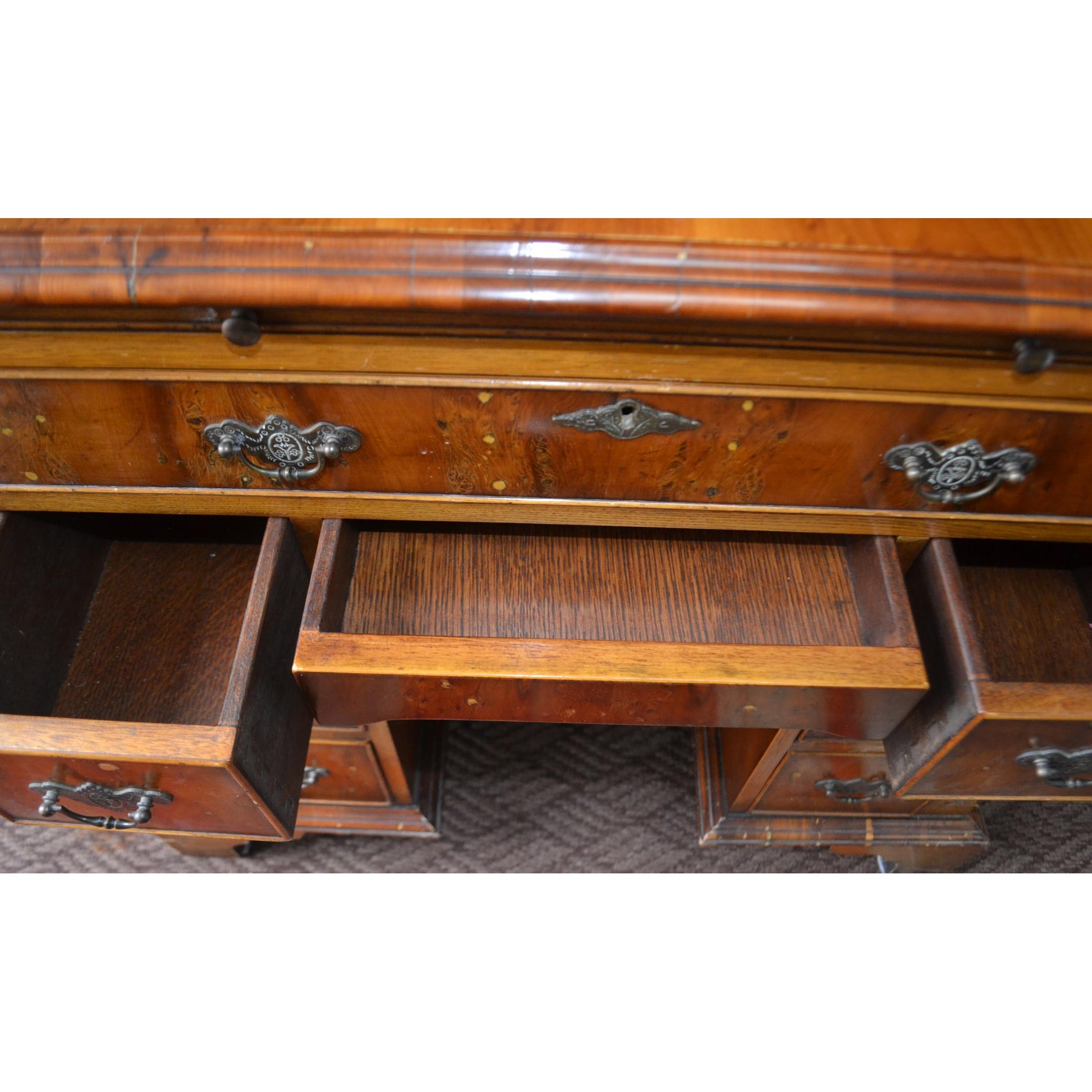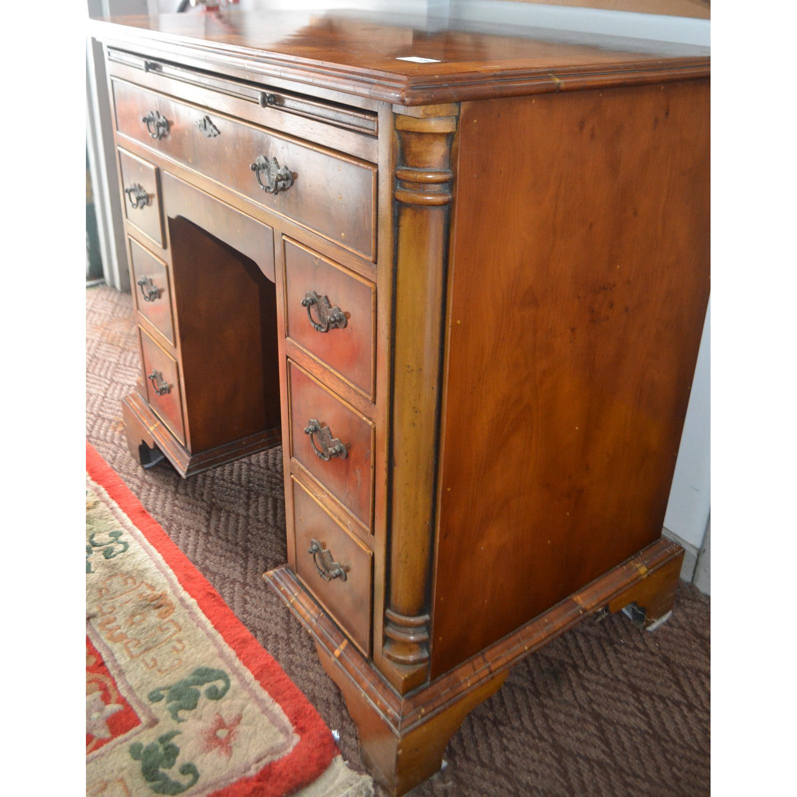 Excellent quality Antique style walnut and Yew trim writing desk one over six drawers, with a pull out writing board with leather style top, also a concealed drawer, and a small storage cupboard