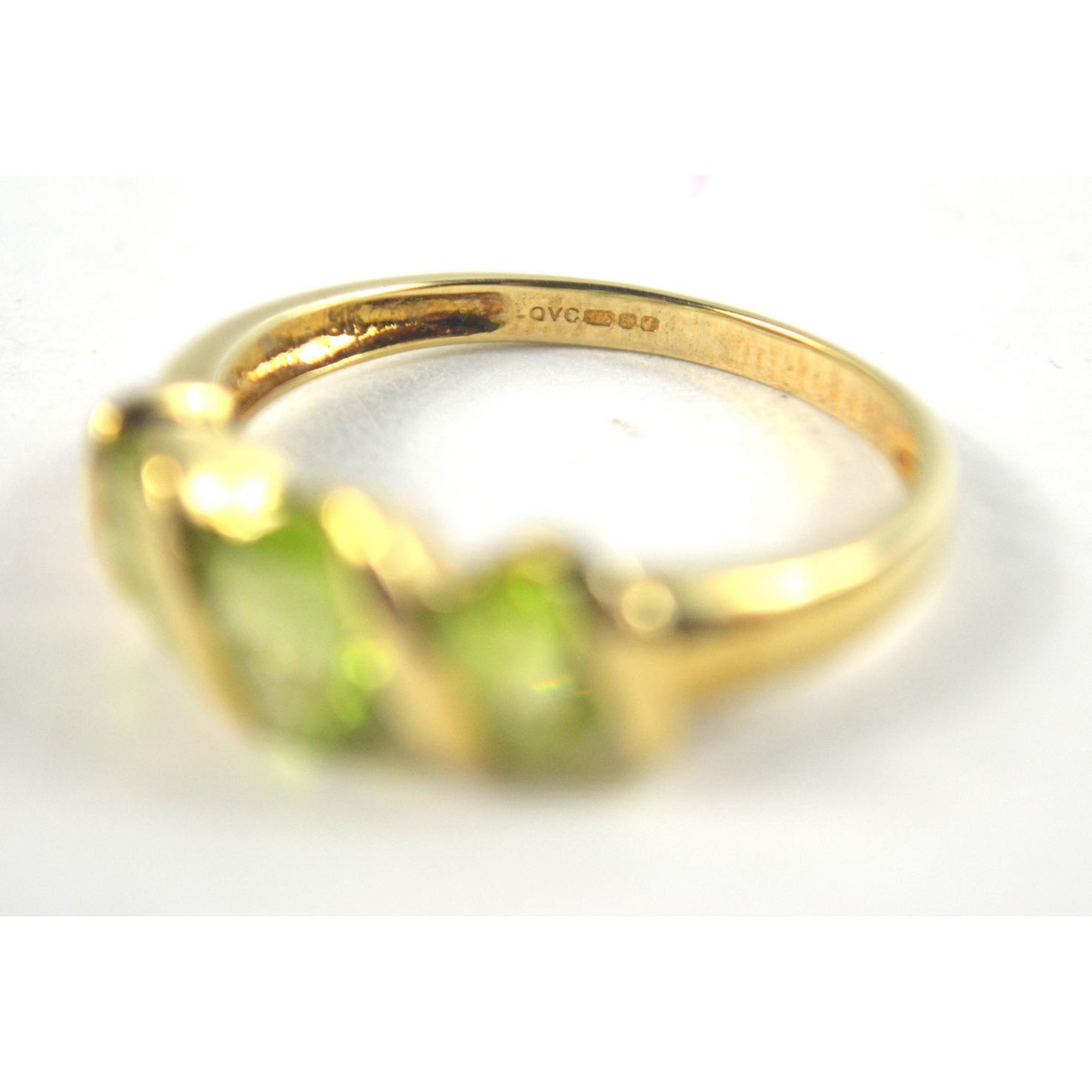 375 Stamped 3 Stone pale green set ring [size P ]