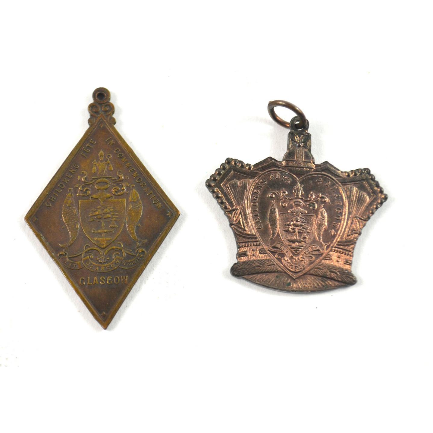 Queen Victoria programme of songs celebrating the Diamond Jubilee 1897 by a children’s fete on June 1897 by The City of Glasgow and also Coronation Day Edward V11 June 1902 commemorative medal, in the shape of a Crown, also another Queen Victoria Diamond Jubilee children’s fete Glasgow with Victoria verso rated 1837-1897 ( 3 items)