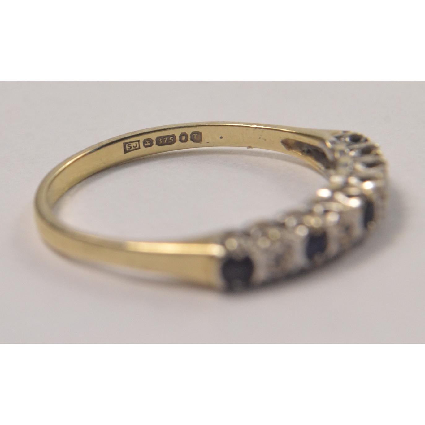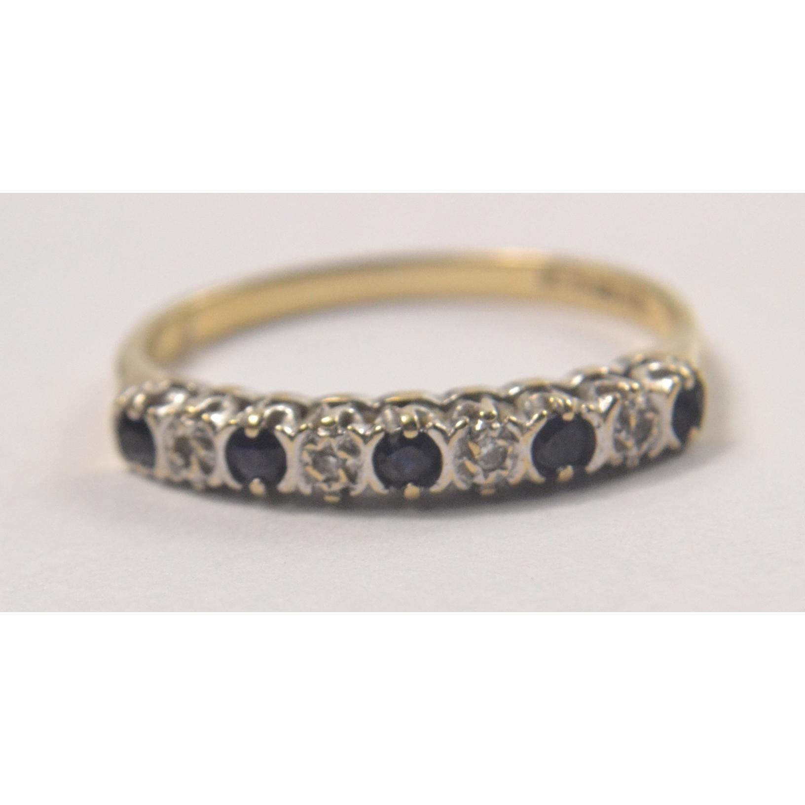 375 stamped yellow gold ladies diamond and sapphire eternity ring size NGross weight approx 1.42g