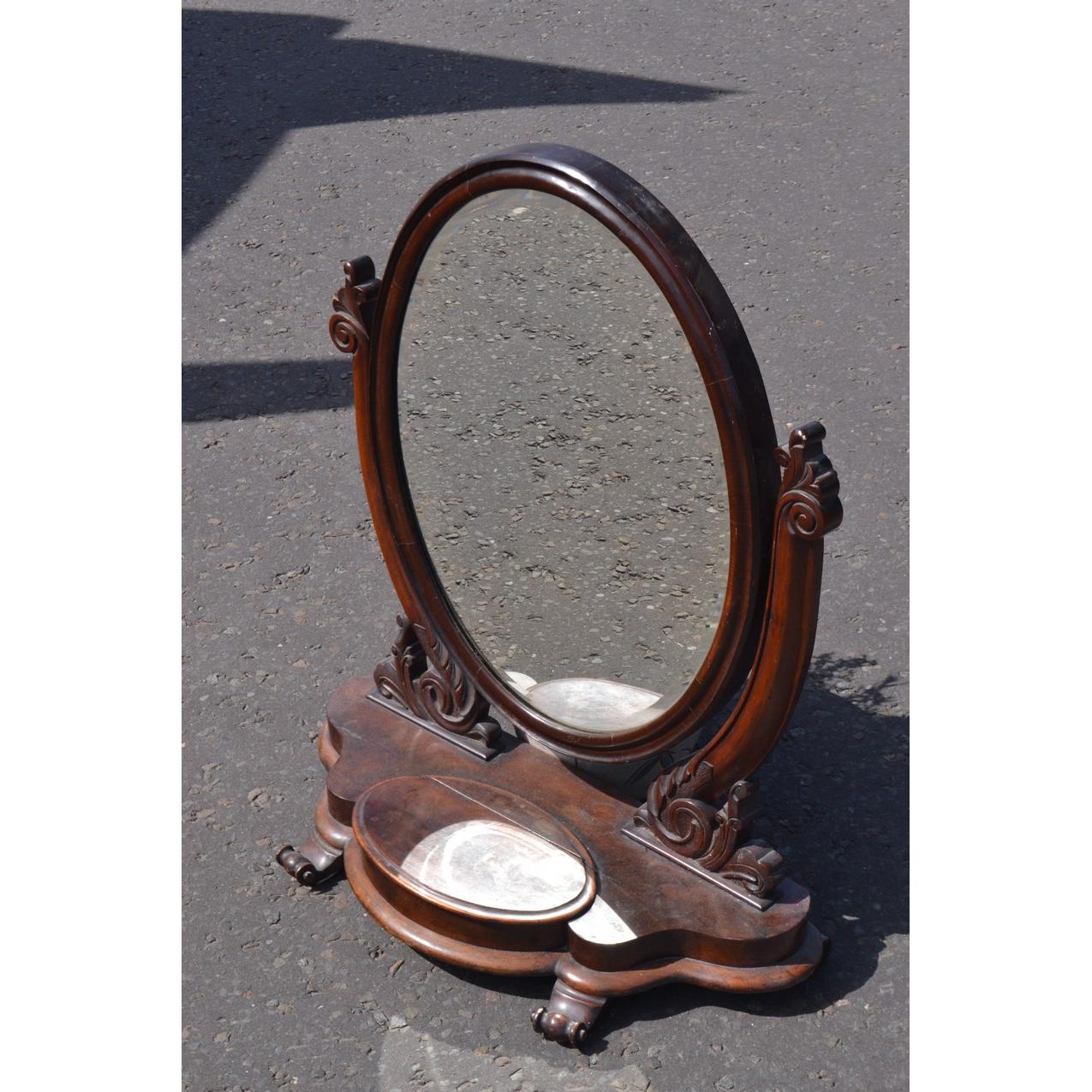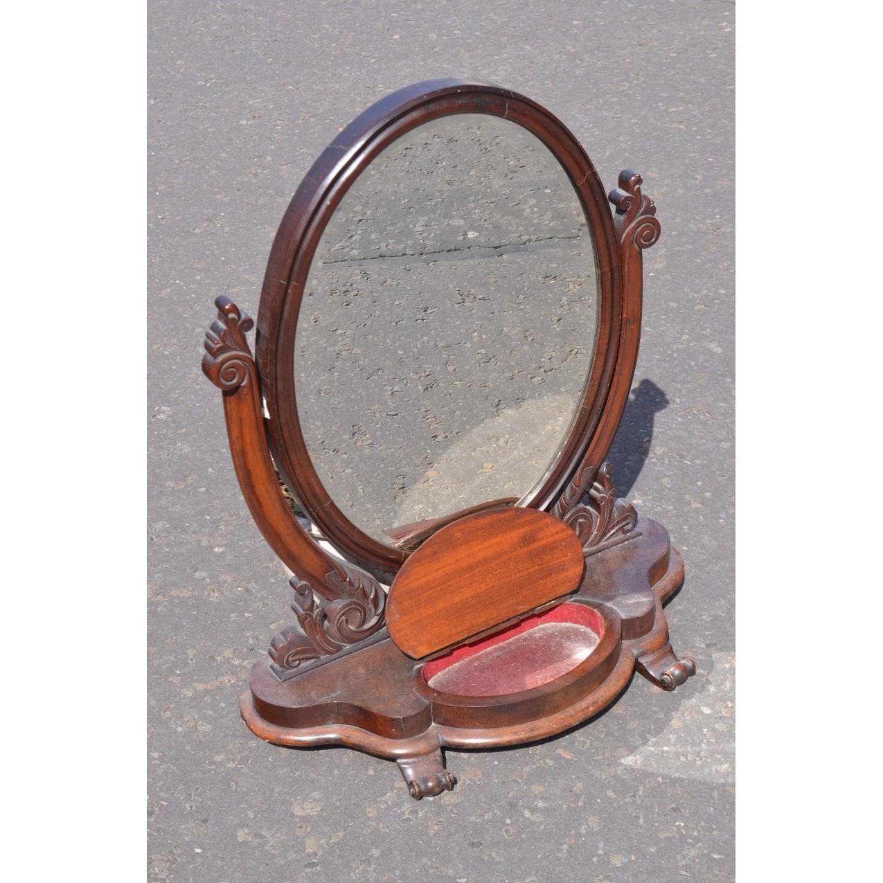 Victorian dressing glass in mahogany with small flip top lidded compartment