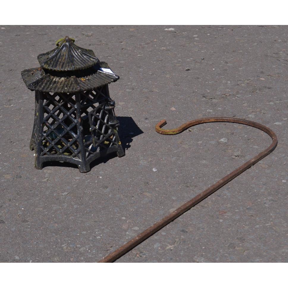 Unusual hanging Garden Chinese style Pagoda iron lantern on a 3ft tall spike Nice Quality! ( starting bid (£20)Approx 2 pieces