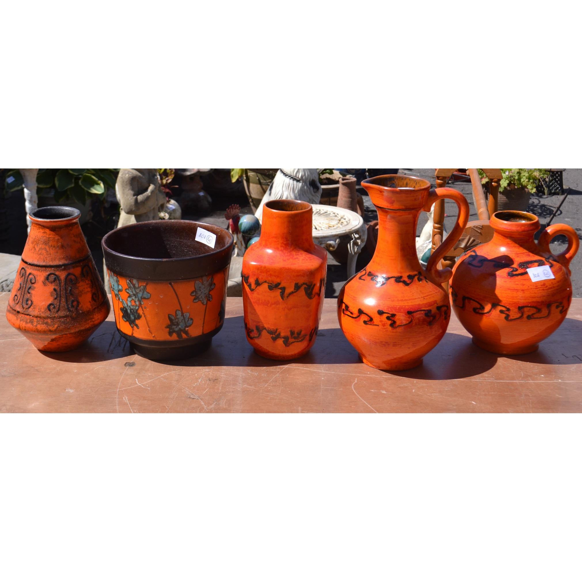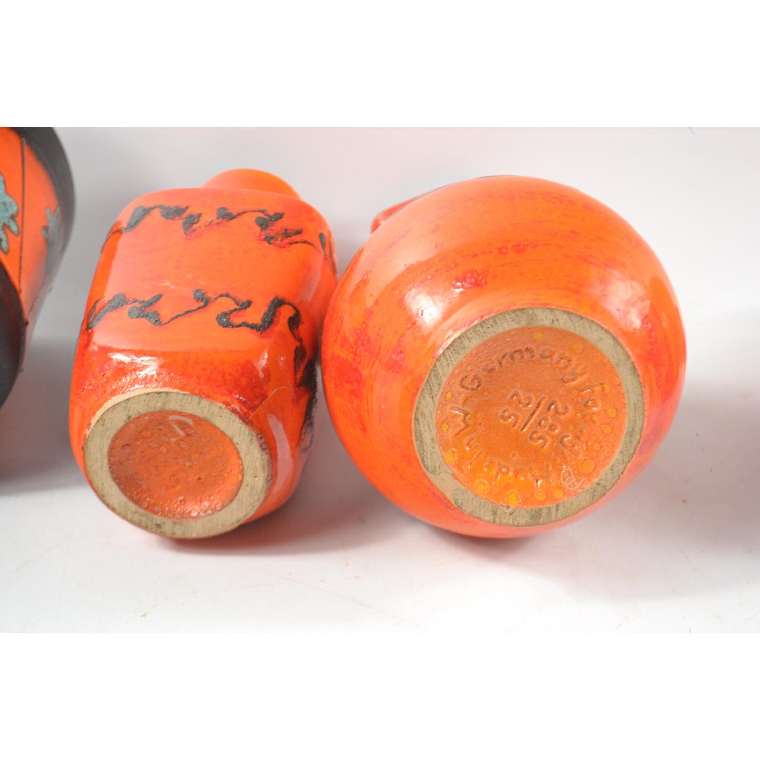 Selection of mainly German made brightly coloured pottery early c1970’s Volcanic vases and jugs etc