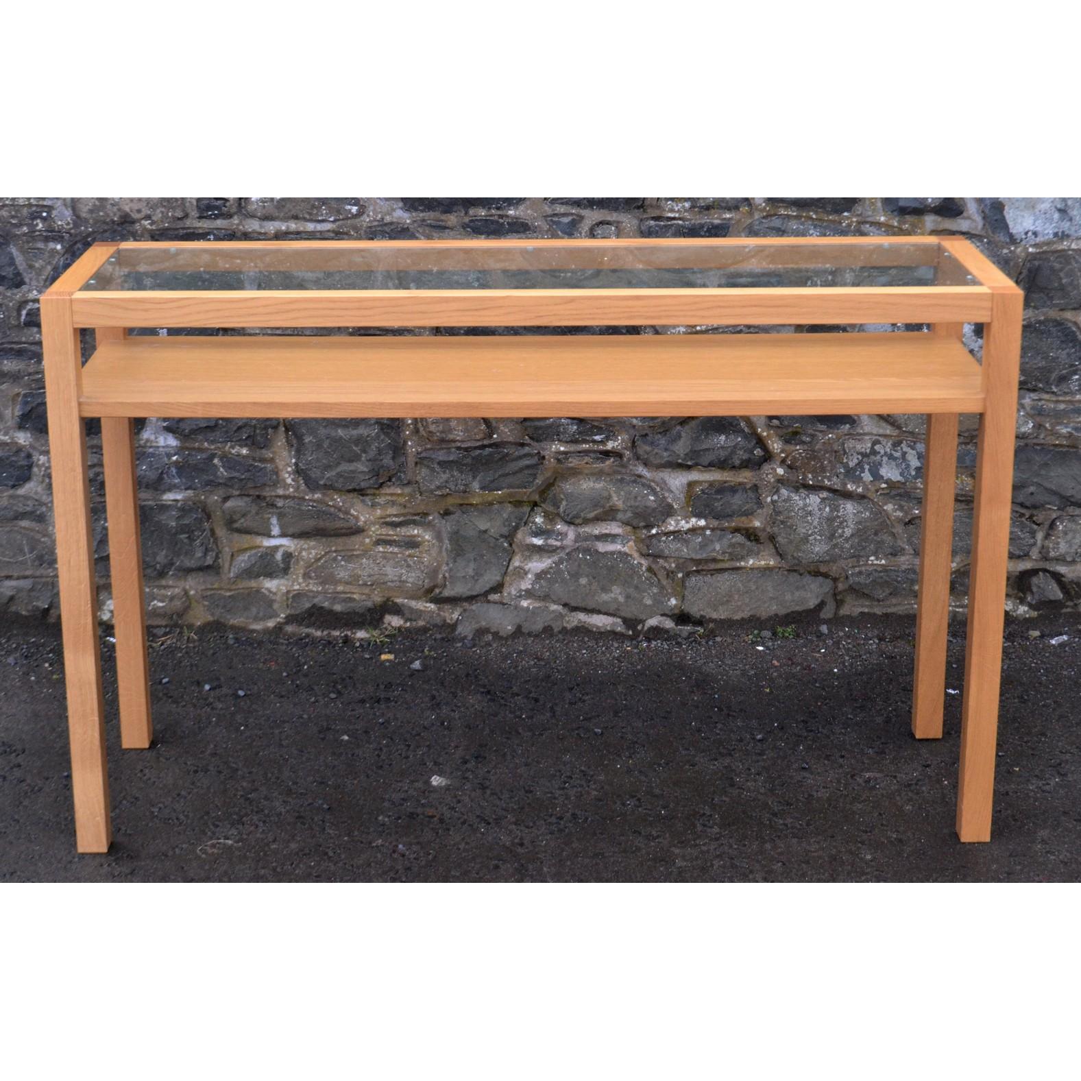 Modern light oak style ex-Habitat console table with glazed top