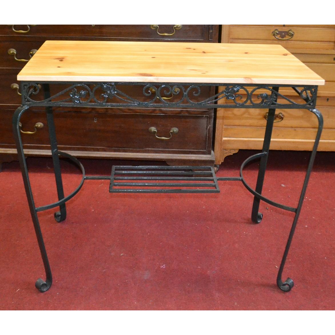 Cast iron conservatory table with pine rectangular topW: 86cm approx H: 72cm approx D: 44cm approx