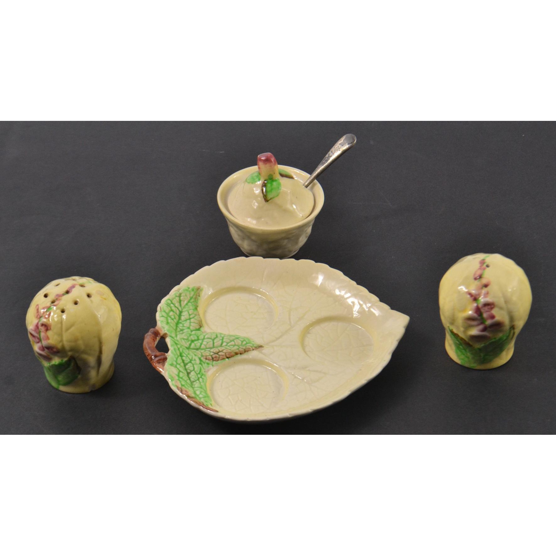 CARLTONWARE YELLOW PATTERENED CONDIMENT SET- really nice and in good condition with small spoon