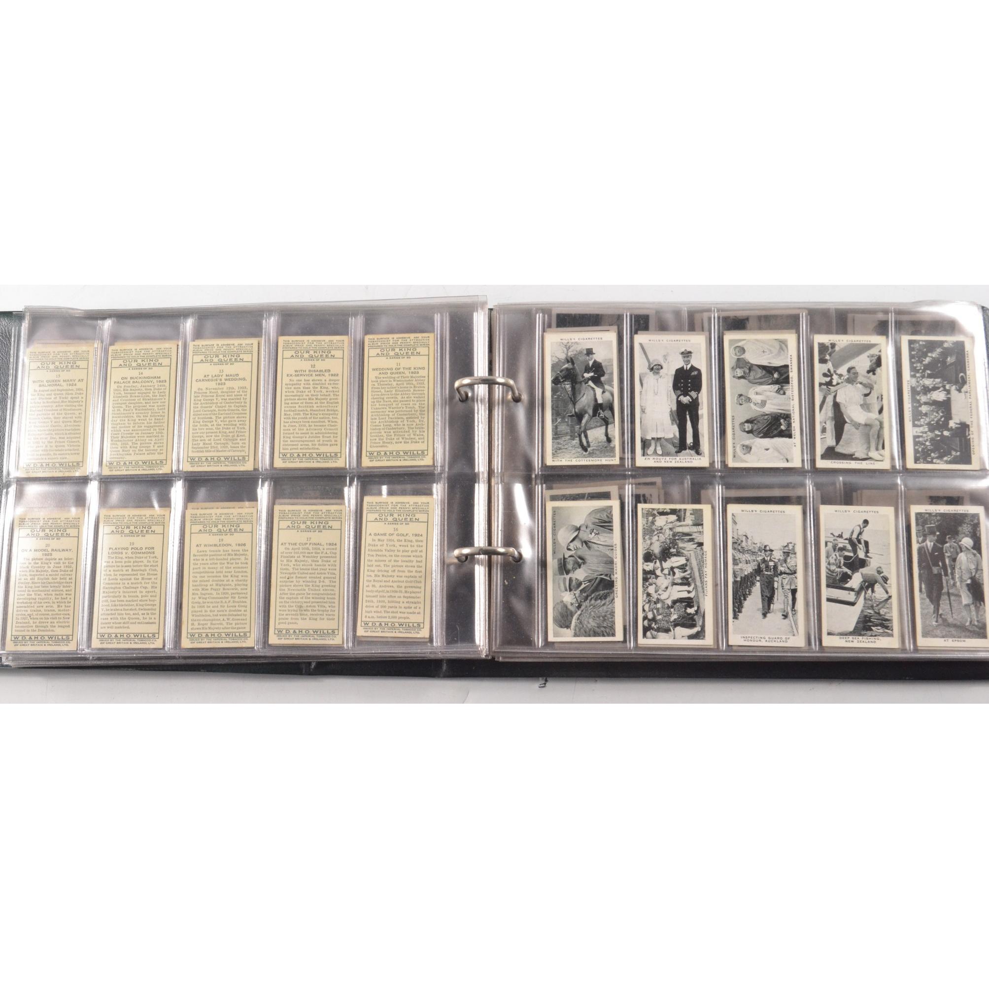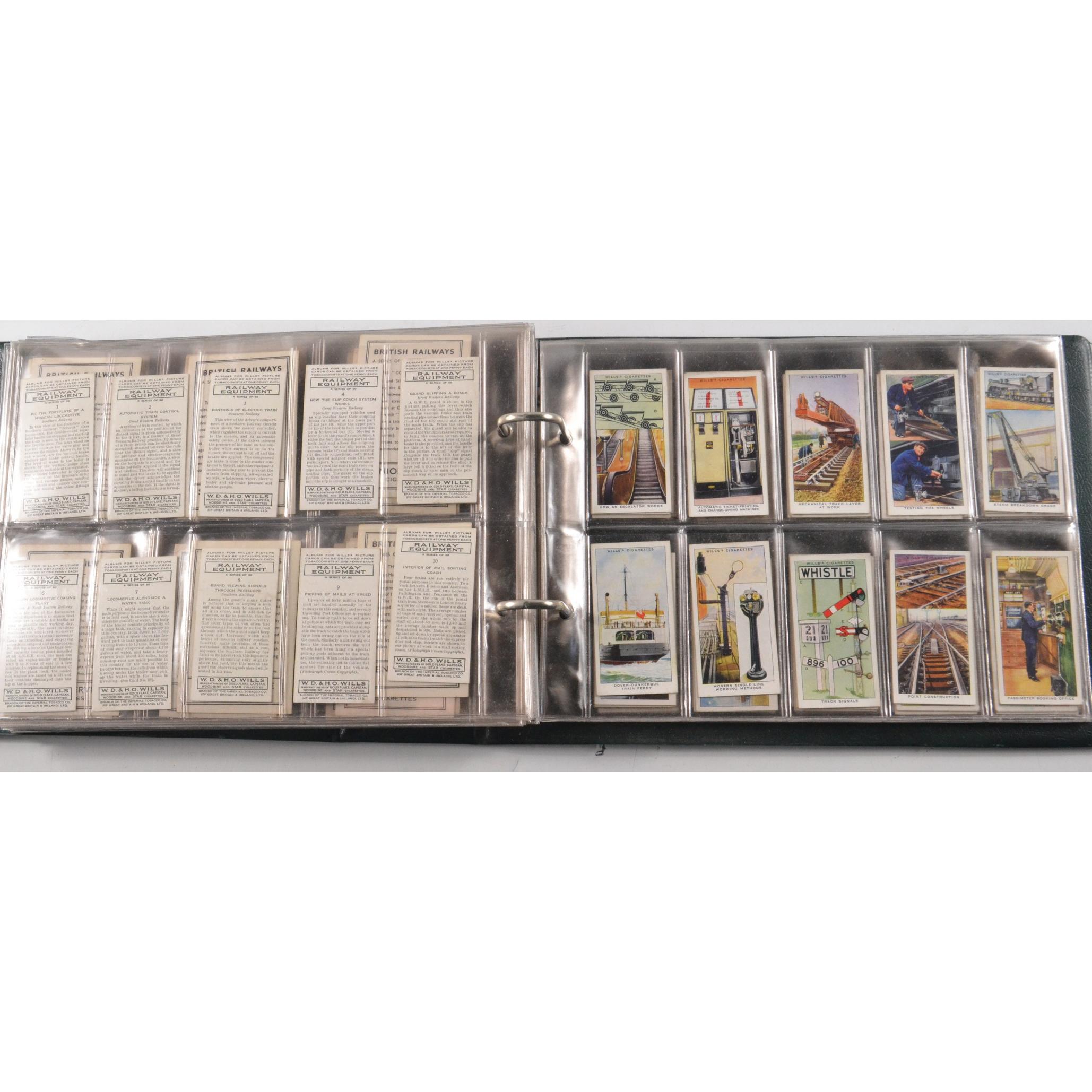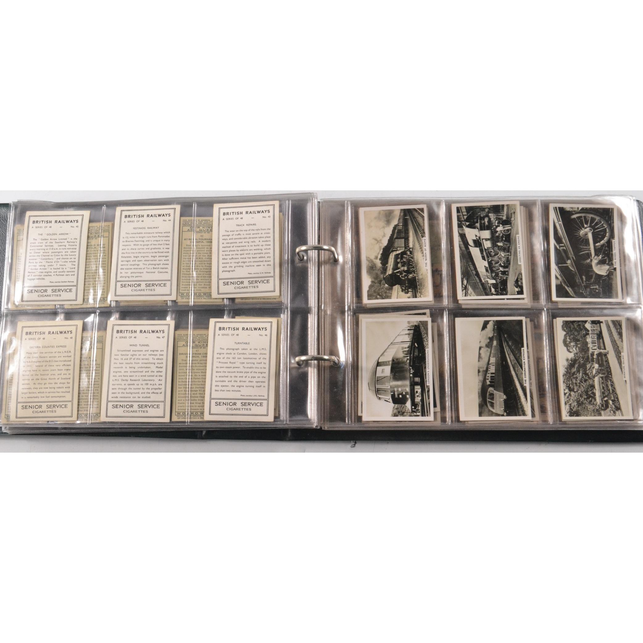 Large (over 550) Vintage collection of cigarette badges in a bound clip folder with plastic sleeve individual pockets of 10 cards per sleeve(one series 6 cards per sleeve), Military Uniforms by CRAVEN x 50 cards, By The Roadside issued by OGDENS x 50 cards, Engineering Wonders issued by WILLS x 50 cards, Our King & Queen issued by WILLS x 50 cards, British Railways issued by SENIOR SERVICE x 48 in sleeves of 6 cards, also Railway Equipment issued by WILLS qty 50 cards and lastly Air Raid Precautions issued by WILLS qty 50 cards and lastly a set of Military Aircraft issued by WILLS x50 cards approx