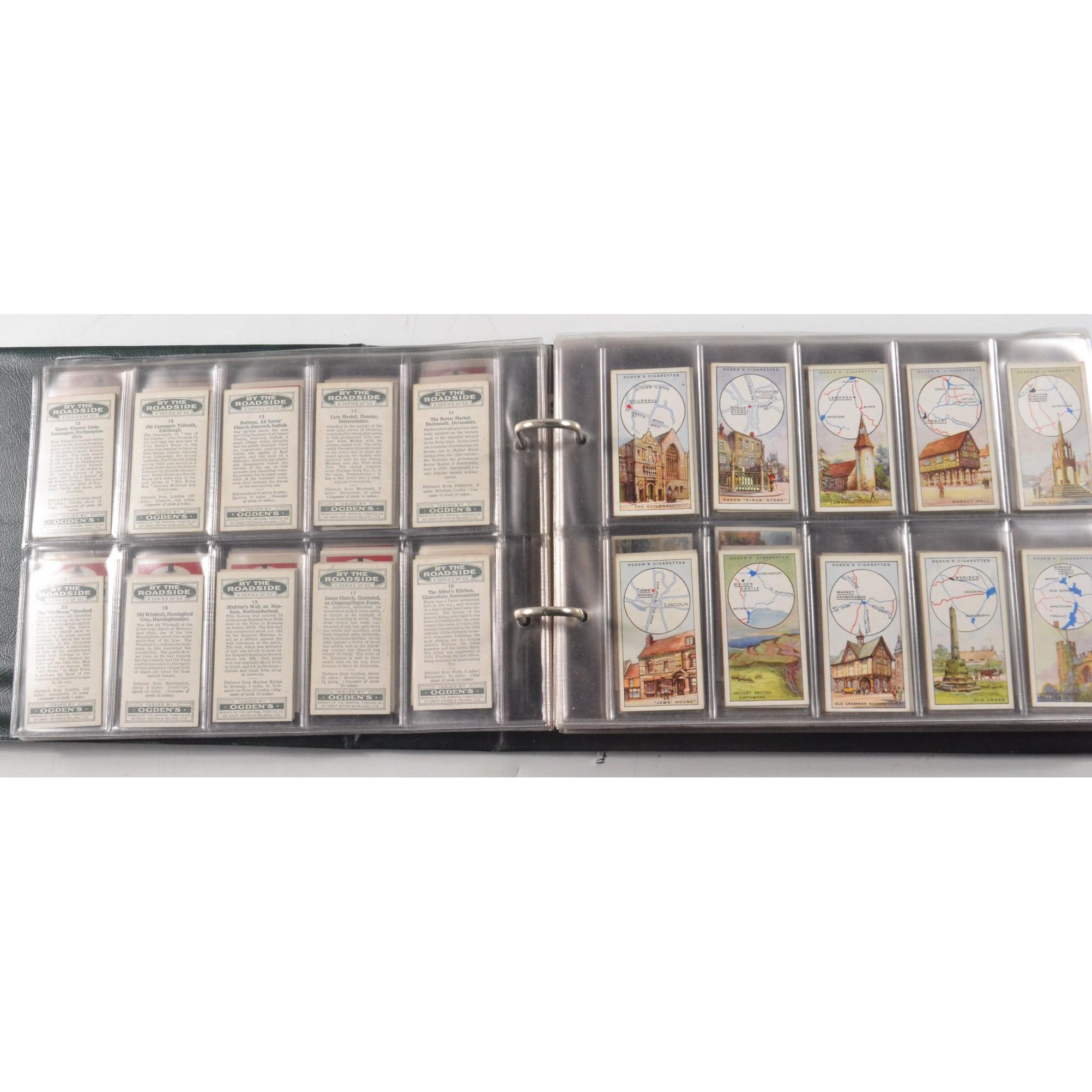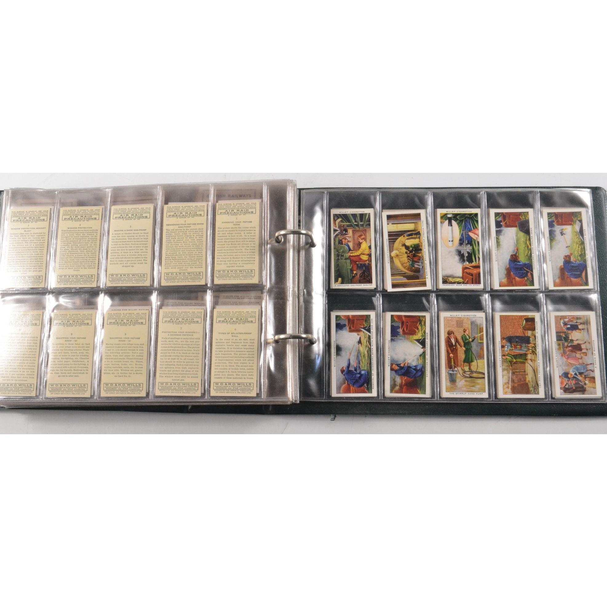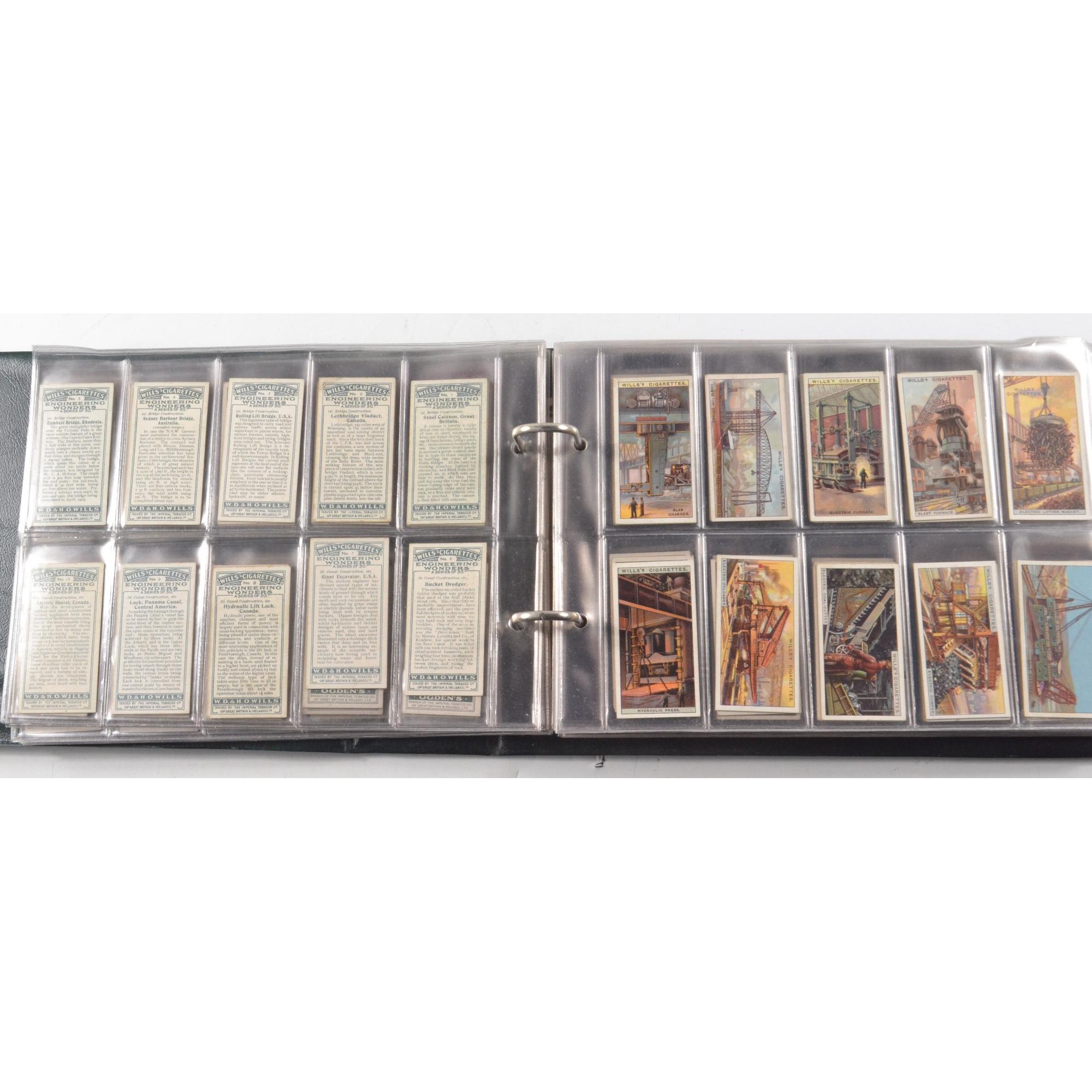 Large (over 550) Vintage collection of cigarette badges in a bound clip folder with plastic sleeve individual pockets of 10 cards per sleeve(one series 6 cards per sleeve), Military Uniforms by CRAVEN x 50 cards, By The Roadside issued by OGDENS x 50 cards, Engineering Wonders issued by WILLS x 50 cards, Our King & Queen issued by WILLS x 50 cards, British Railways issued by SENIOR SERVICE x 48 in sleeves of 6 cards, also Railway Equipment issued by WILLS qty 50 cards and lastly Air Raid Precautions issued by WILLS qty 50 cards and lastly a set of Military Aircraft issued by WILLS x50 cards approx