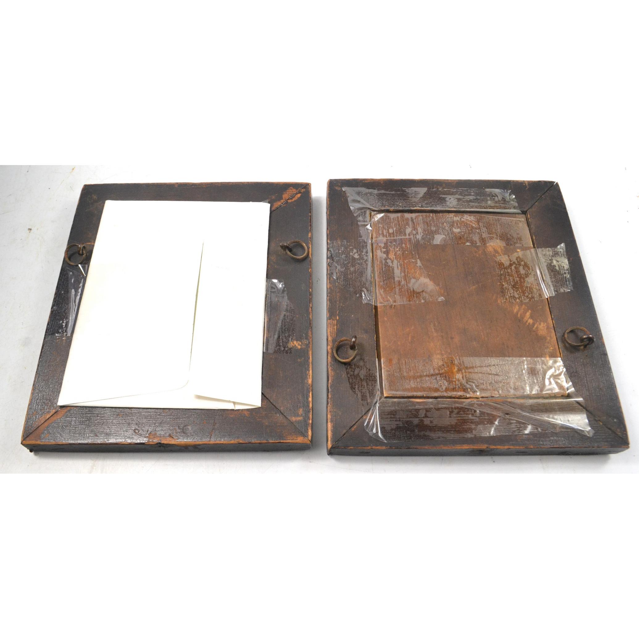 A pair of antique silhouette oak framed pictures in 19th century frames, with family tree tucked inside belonging to the pair(presumably!)L: 15.5cm approx H: 18cm approx Approx 2 pieces