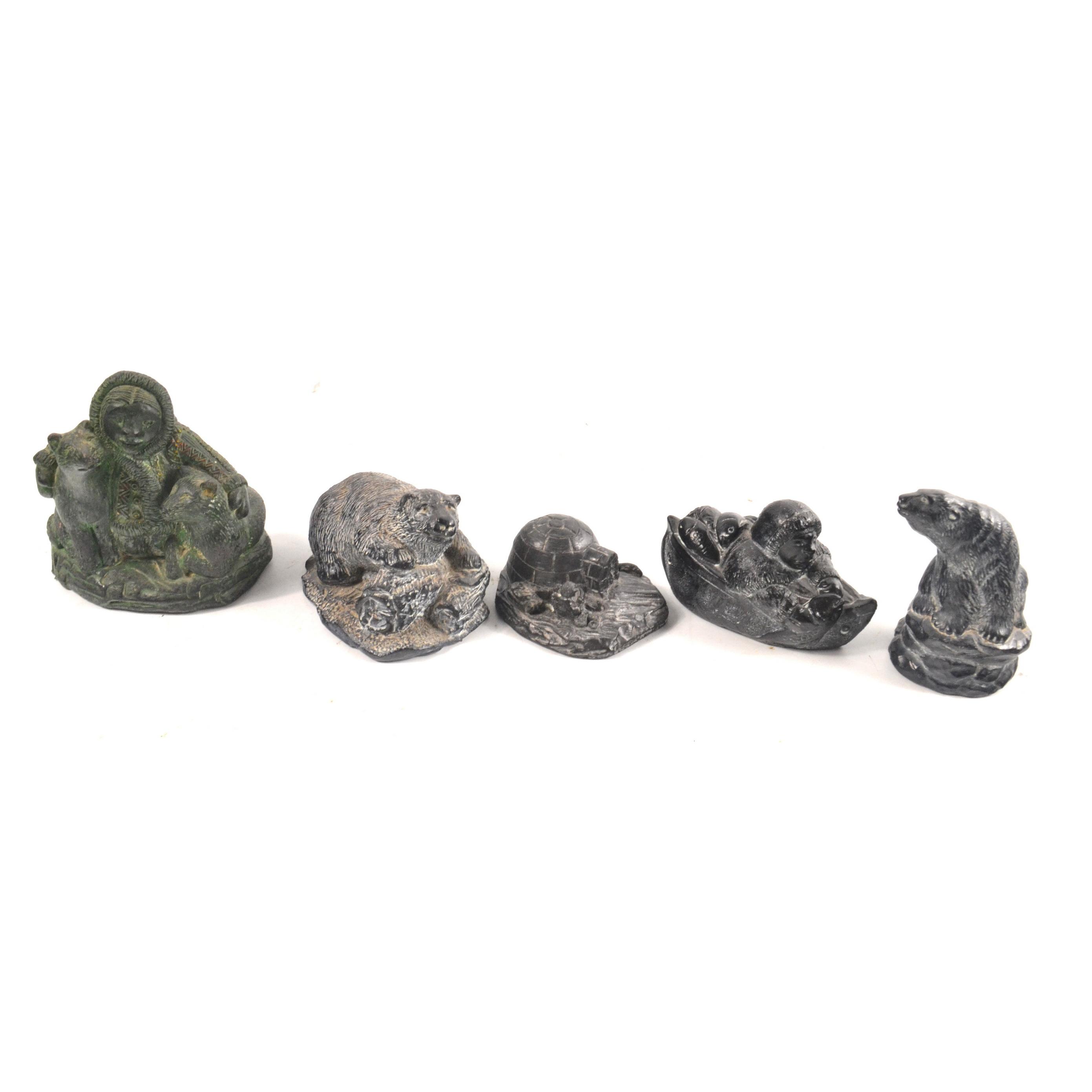Selection of Canadian carved coal figures of inuits and polar bearsApprox 5 pieces